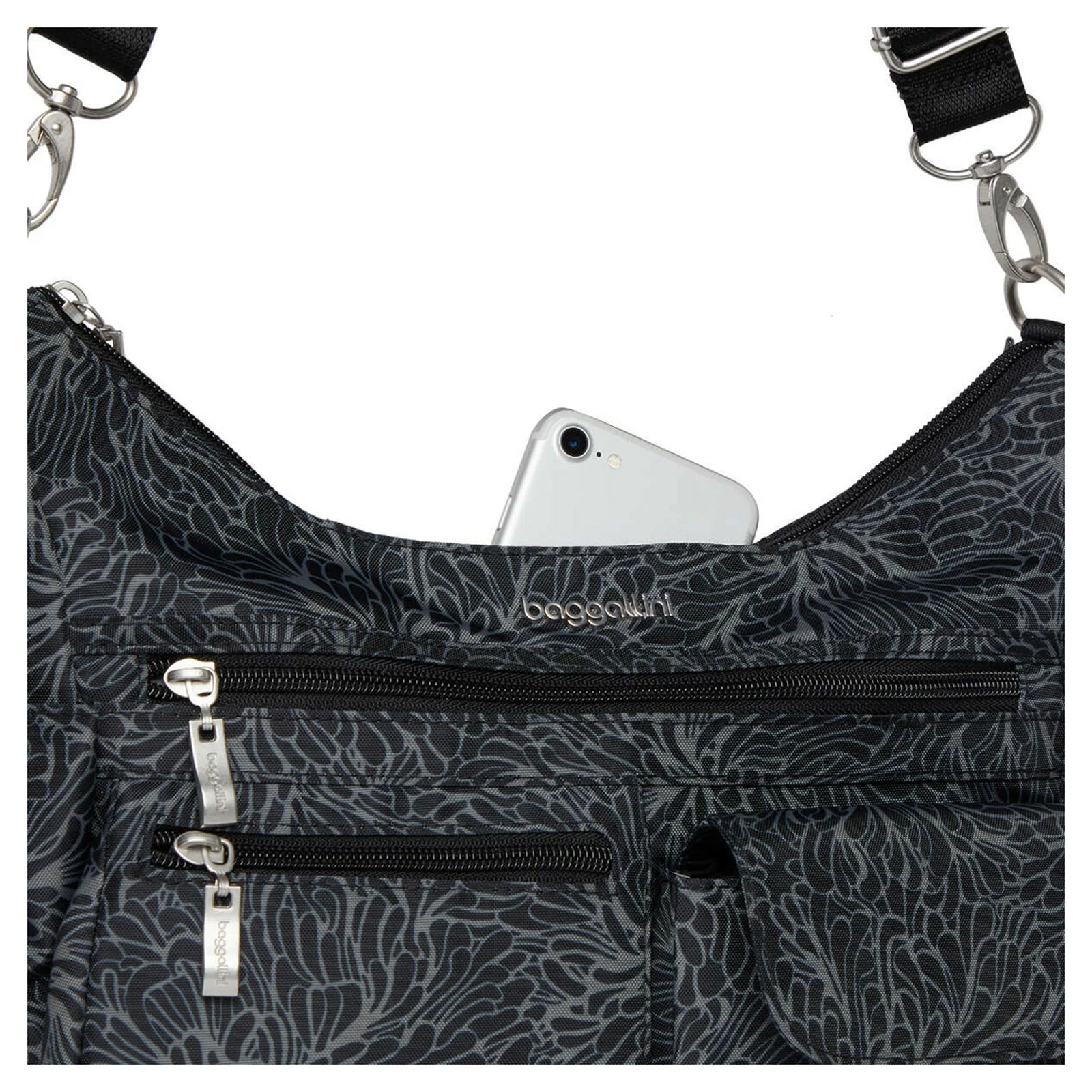 Baggilini, Modern Everywhere Hobo Bag. This smart bag is the perfect choice for your next vacation since it has RFID protection and tons of storage space. Lightweight, water-resistant nylon design that is clean, scratch-resistant and lightweight.