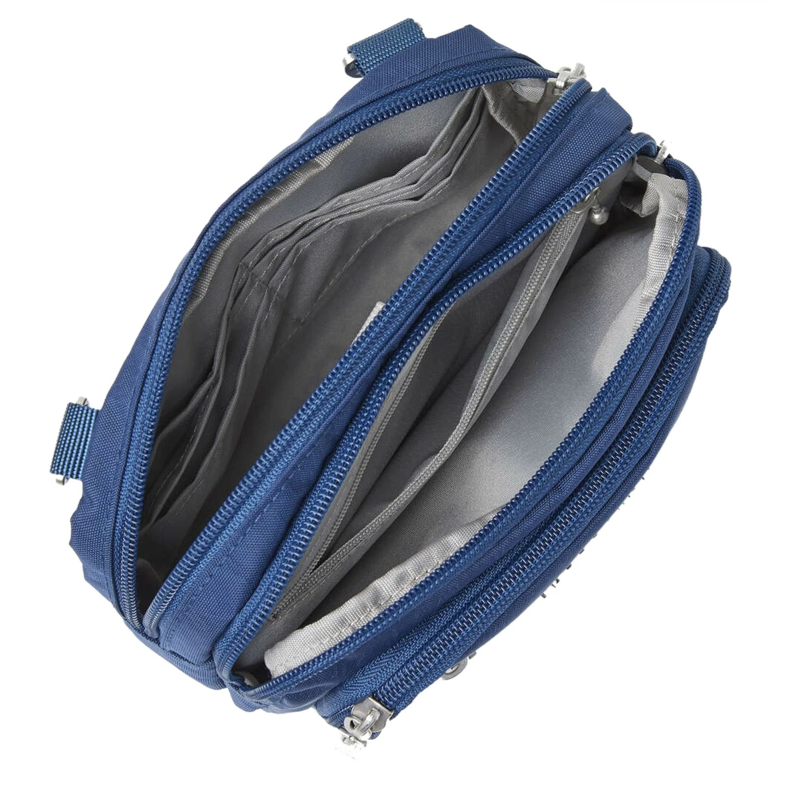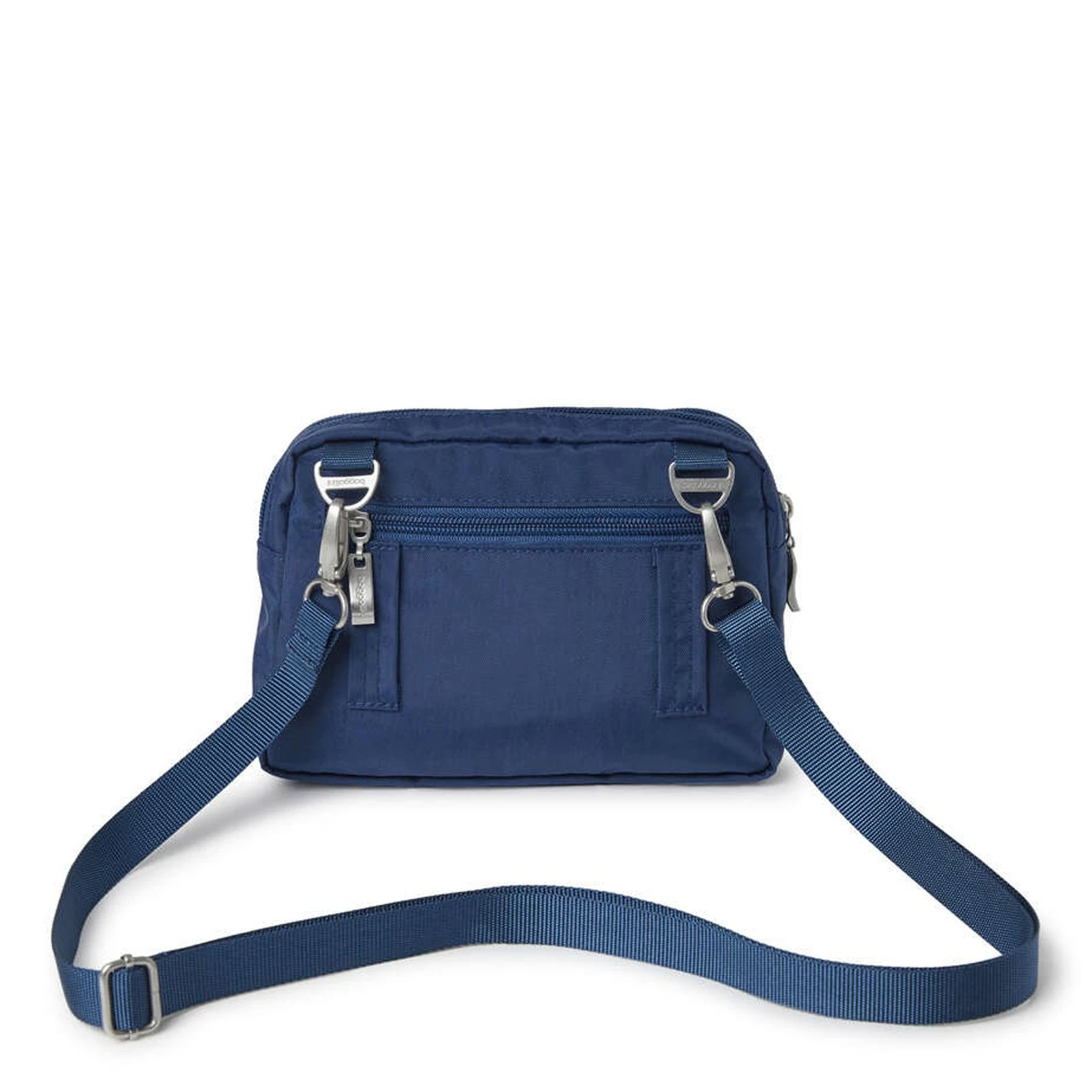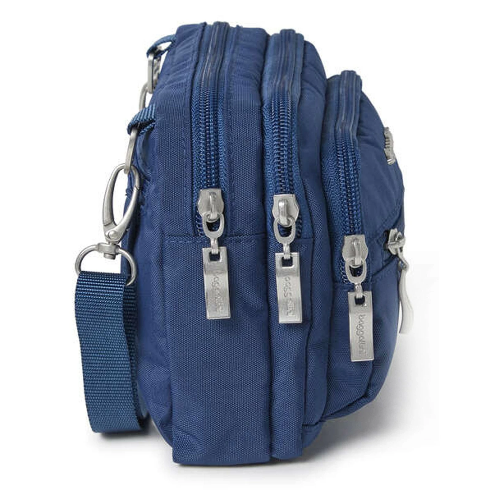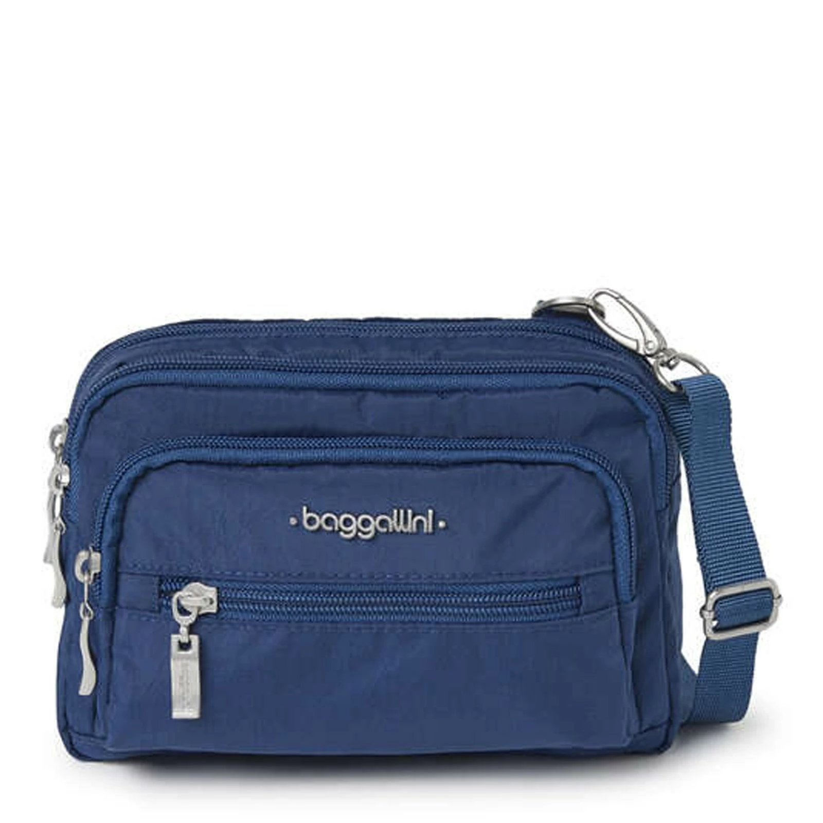 Baggallini, Triple Zip Mini Crossbody. The perfectly sized Triple Zip Bagg fits all your daily essentials and quickly converts from a crossbody, to a clutch, to a waist pack. While the durable exterior is crafted to be clean, the interior organization and multifunctional pockets make for easy access on the go.