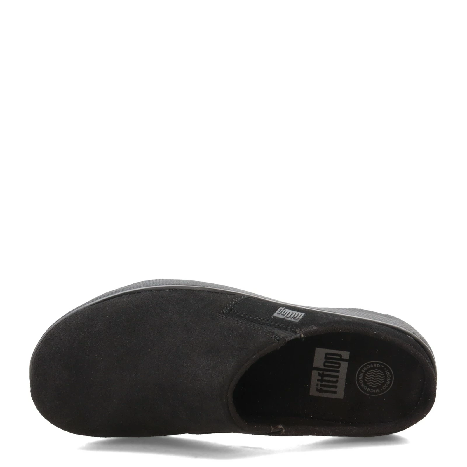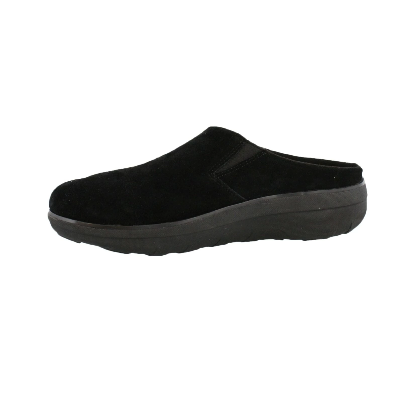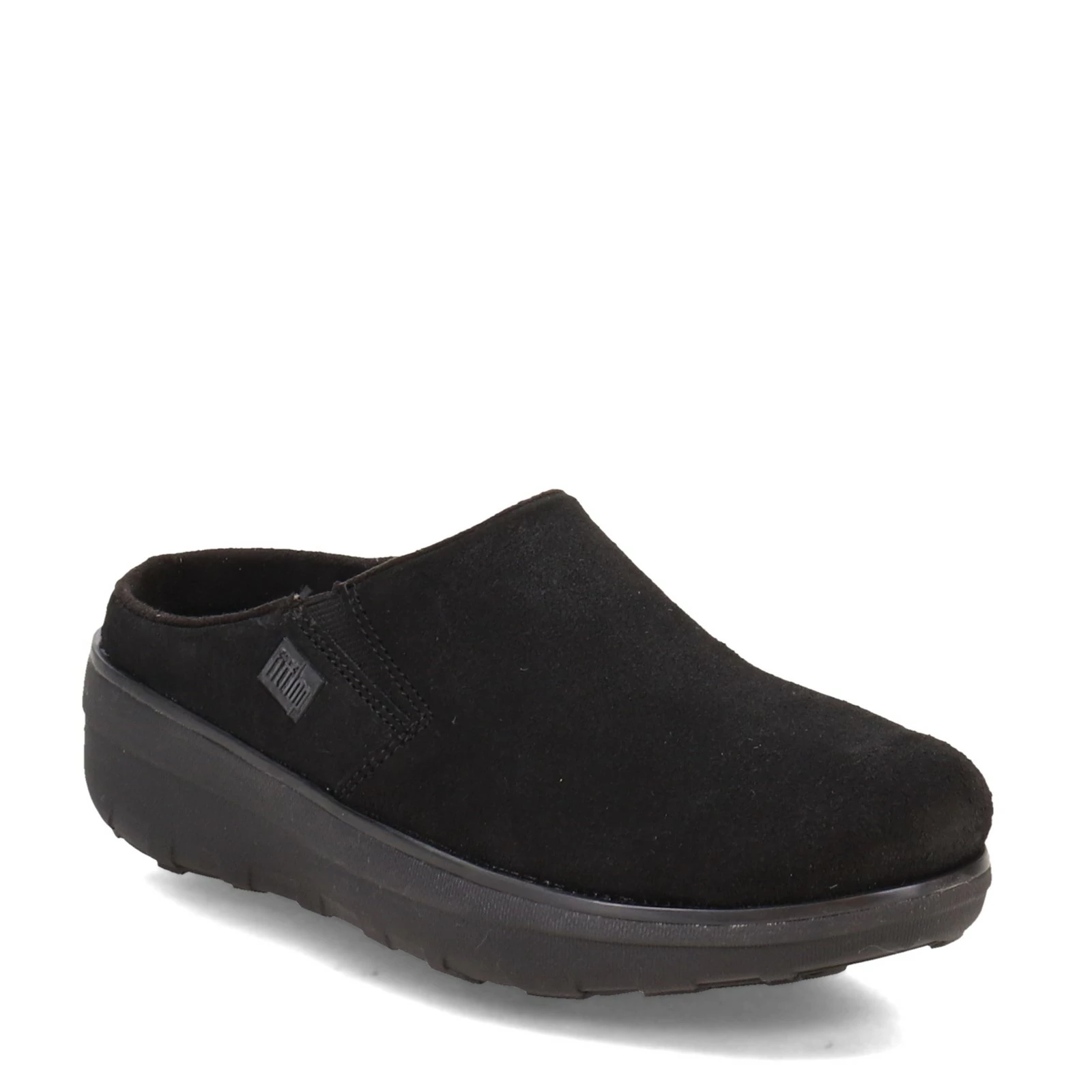 Women’s FitFlop, Loaff Clog. These simple clogs are your perfect running around shoes. The suede upper is treated for added water repellence and the slip on style with elastic side panels make them easy to get on and off. The triple density Microwobbleboard midsole delivers comfort by helping absorb shock and diffusing underfoot pressure by instantly increasing the contact area of the foot to the midsole.