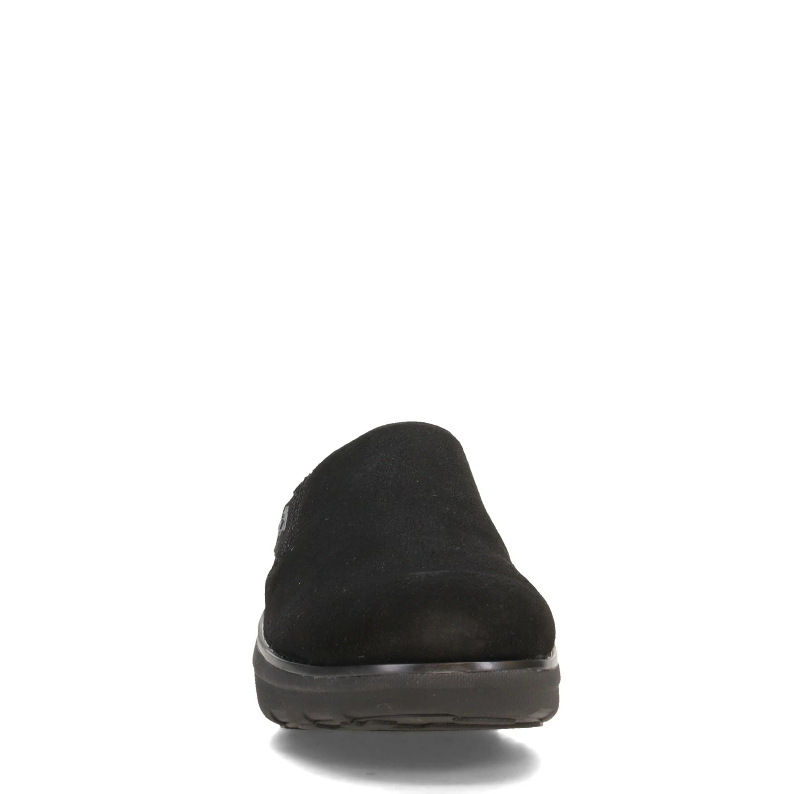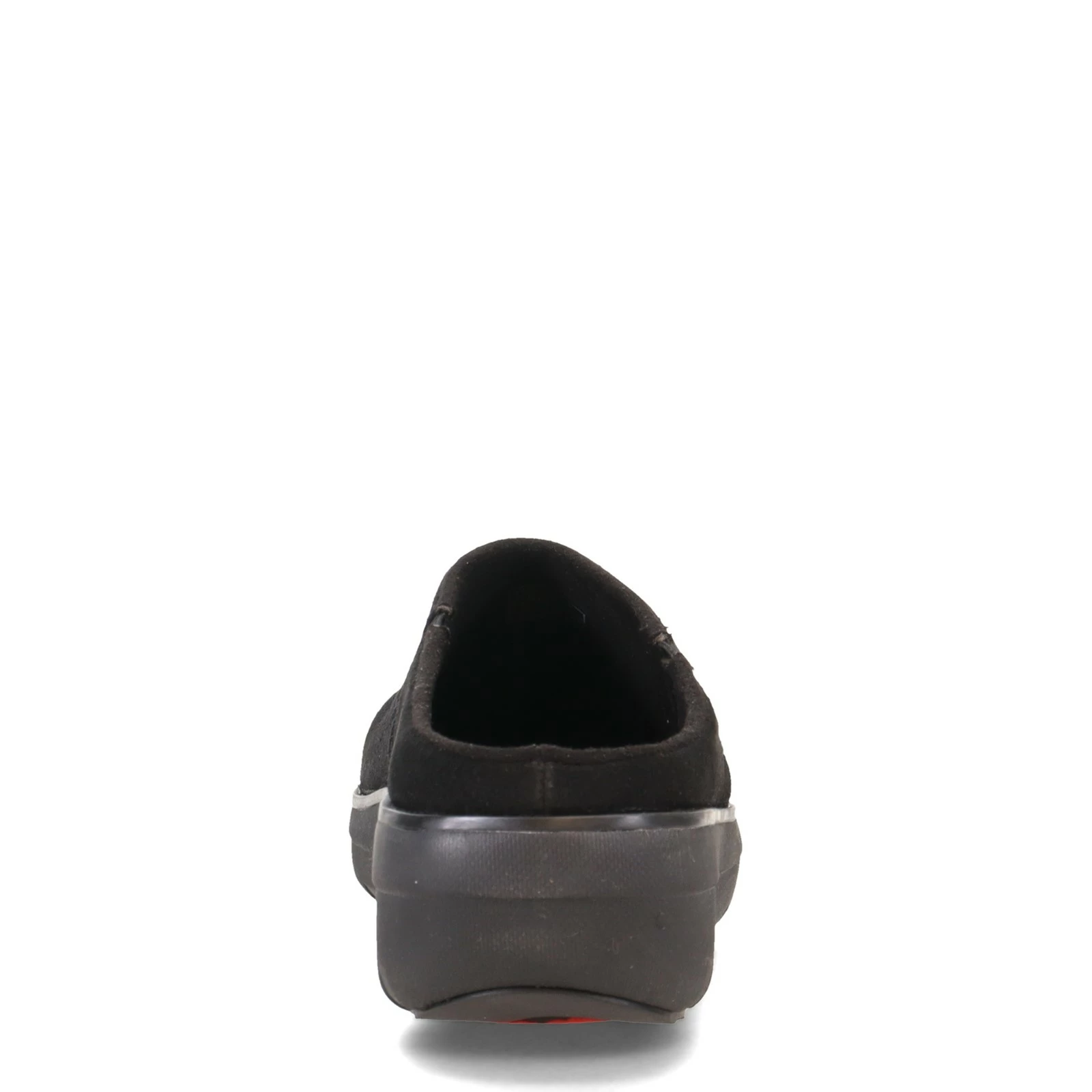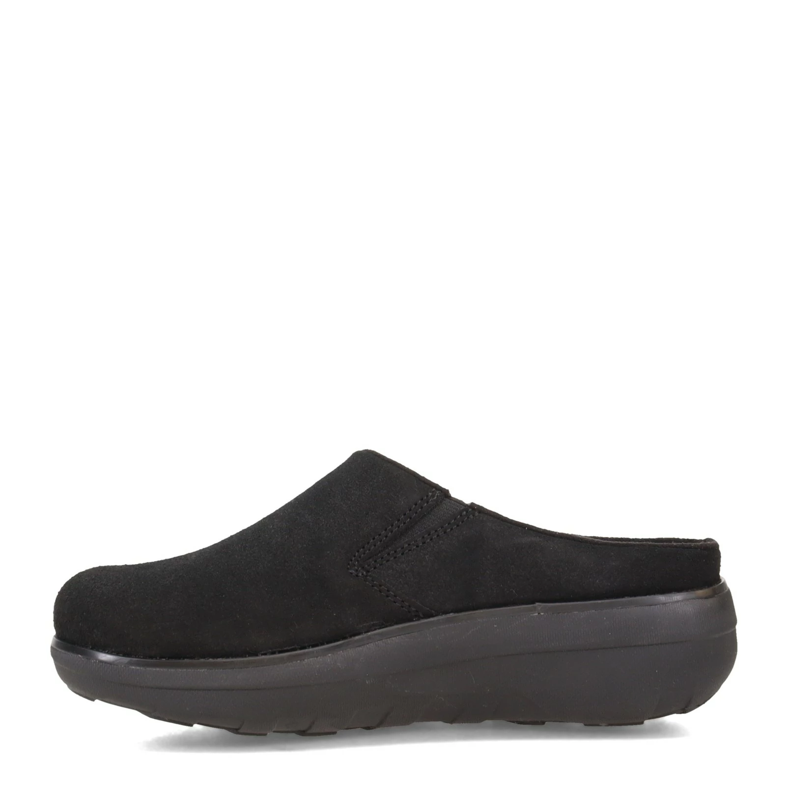 Women’s FitFlop, Loaff Clog. These simple clogs are your perfect running around shoes. The suede upper is treated for added water repellence and the slip on style with elastic side panels make them easy to get on and off. The triple density Microwobbleboard midsole delivers comfort by helping absorb shock and diffusing underfoot pressure by instantly increasing the contact area of the foot to the midsole.