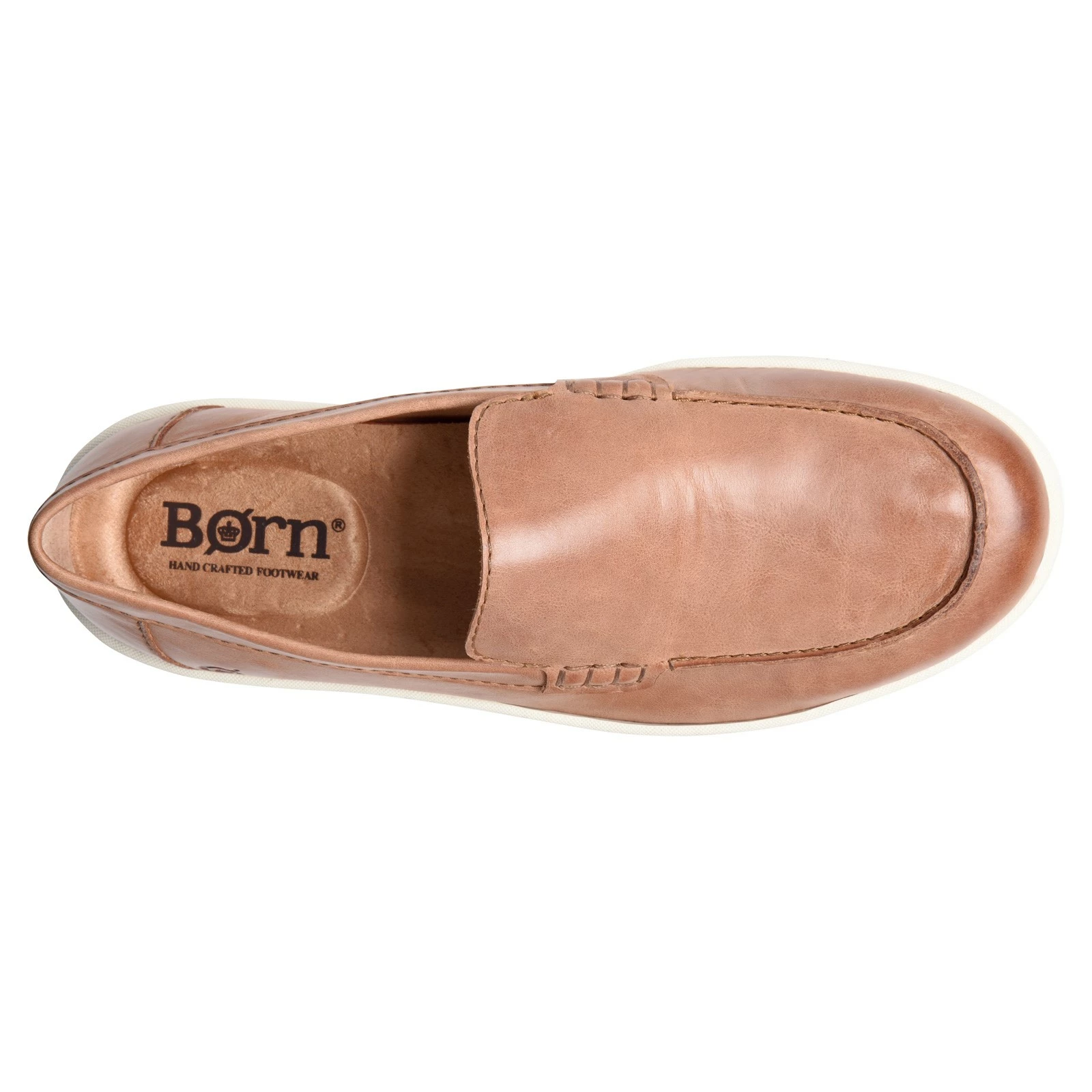Men’s Born, Axel Slip-On. A modern twist on a classic loafer design, these slip-ons can be dressed up or down. With soft hand-finished leather uppers and breathable soft fabric suede lining, they’re comfortable right out of the box.