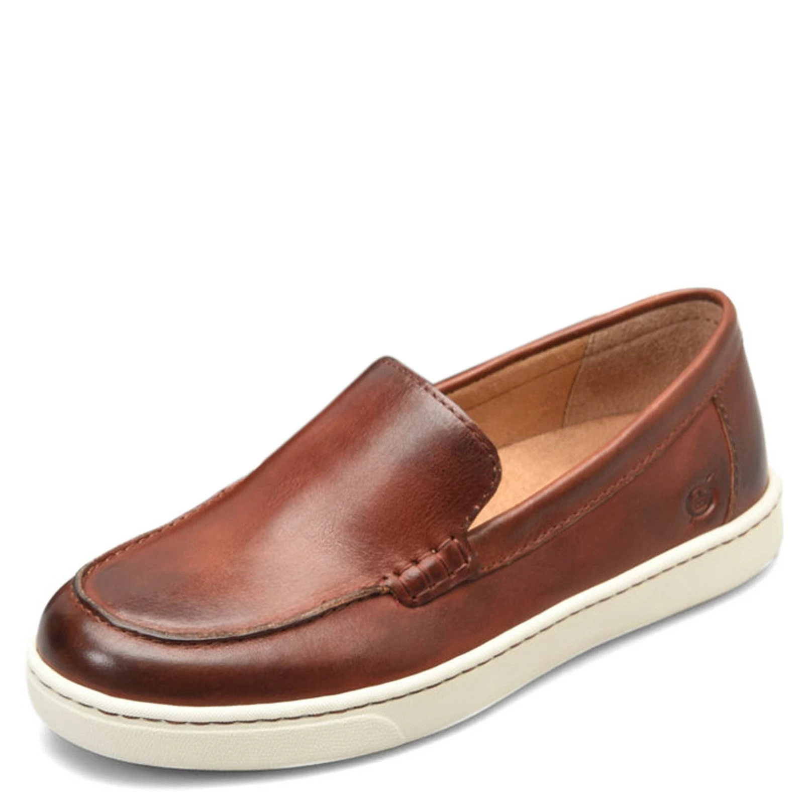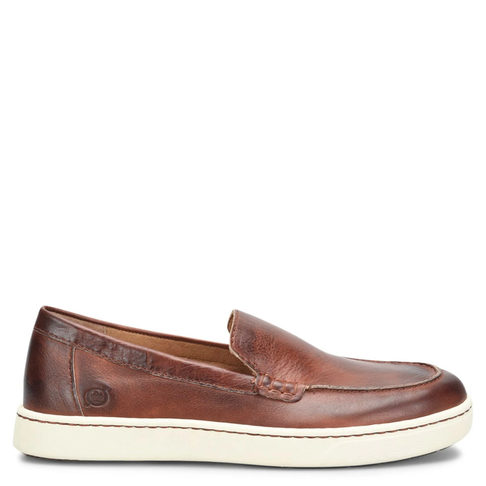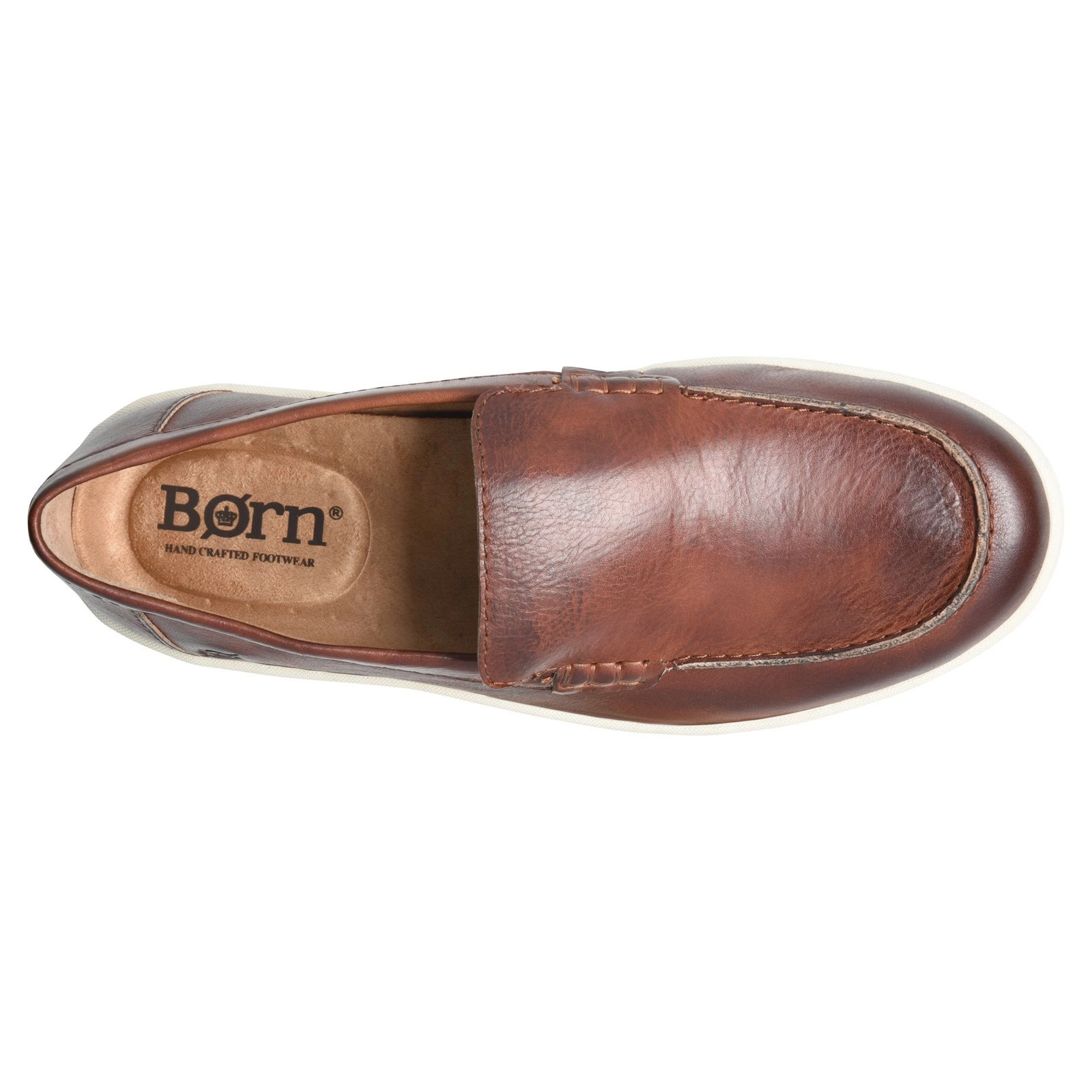 Men’s Born, Axel Slip-On. A modern twist on a classic loafer design, these slip-ons can be dressed up or down. With soft hand-finished leather uppers and breathable soft fabric suede lining, they’re comfortable right out of the box.