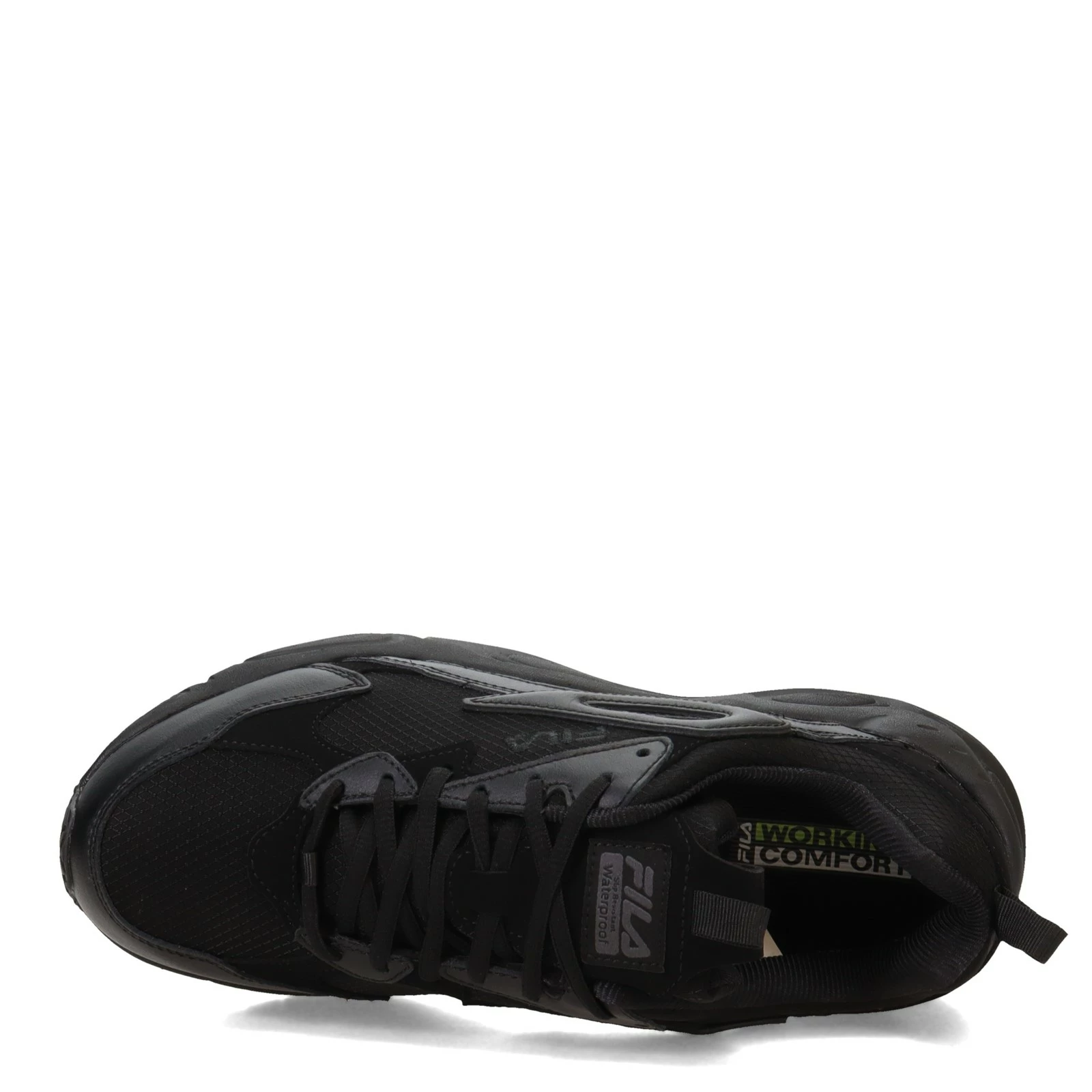 Men’s Fila, Memory Lateshift Work Shoe. These sneakers deliver solid performance on the job. With a slip resistant outsole and a waterproof design, you’ll feel safer and more comfortable at work.