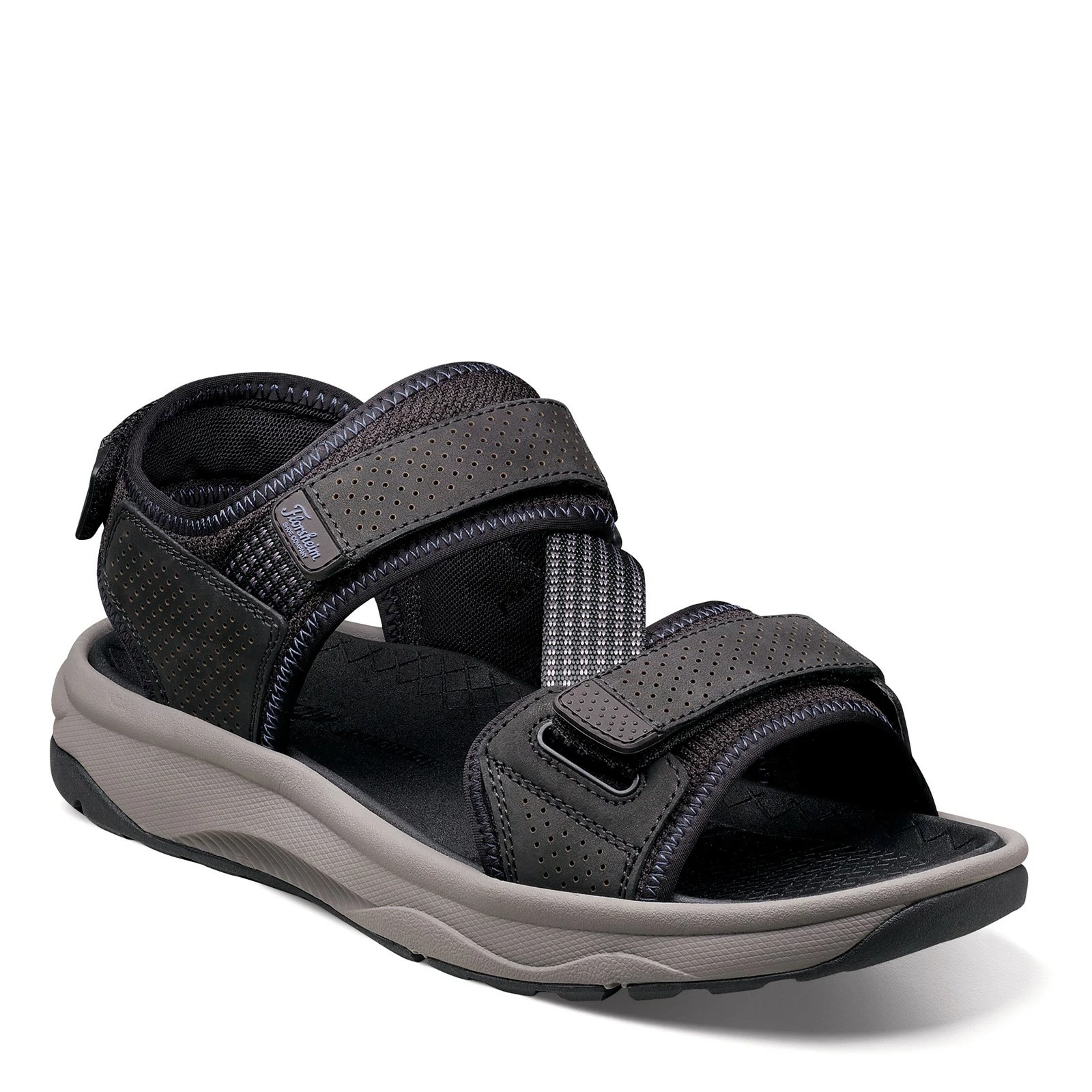 Men’s Florsheim, Tread Lite River Sandal. It’s summer, which means it’s time to pack away your boots and pull out your sandals. The Tread Lite river sandal from Florsheim makes it easy to transition between seasons with their strappy leather upper that includes multiple hook and loop fasteners for a flexible fit and added support. The rebound EVA midsole delivers responsive cushioning while the rubber sole provides durability against wear.