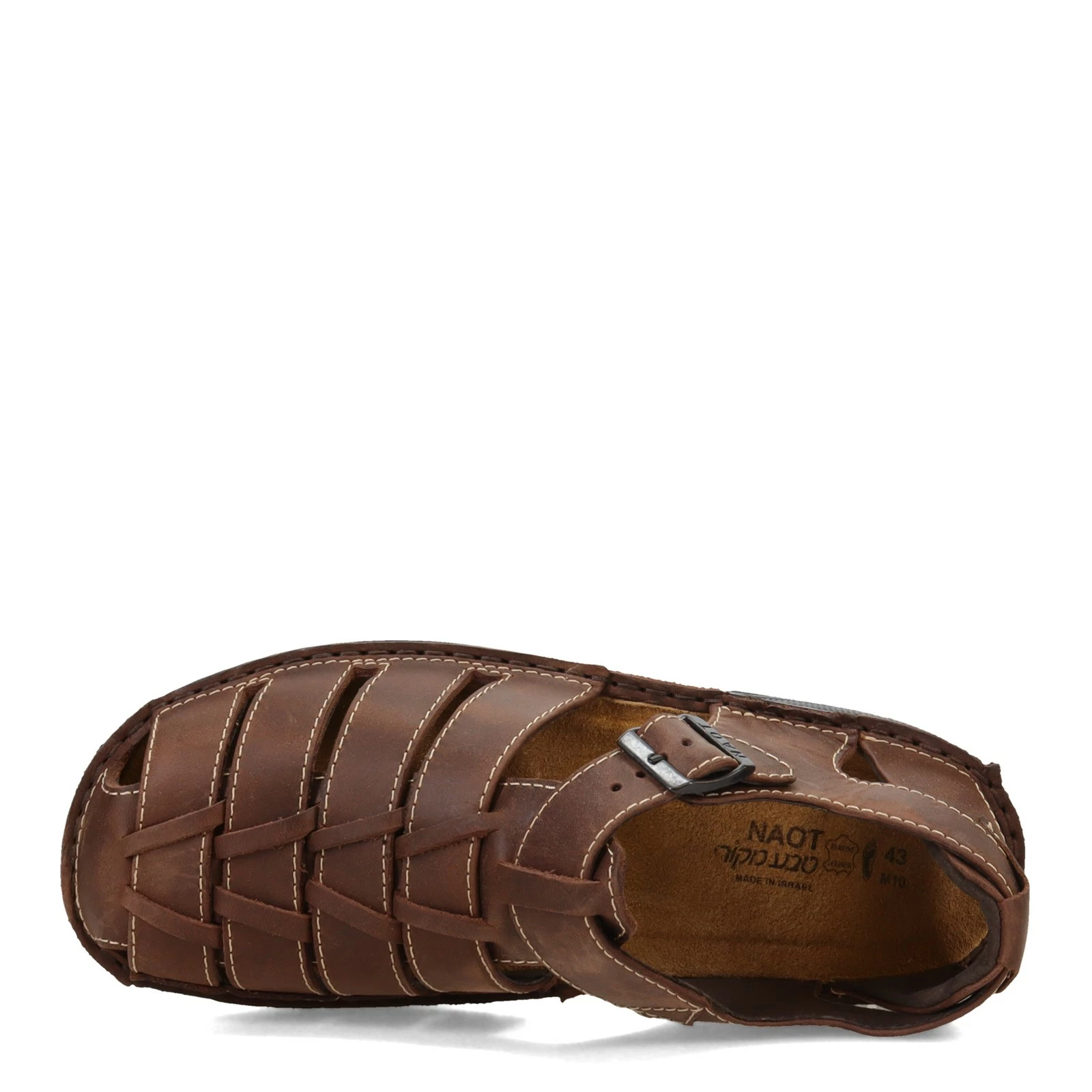 Men’s Naot, Julius Sandal. The Julius fisherman sandal will keep you feeling cool this season while still offering optimal foot coverage. The removable, anatomic cork & latex footbed is wrapped in pampering suede and molds to the shape of the foot with wear, providing all day comfort.