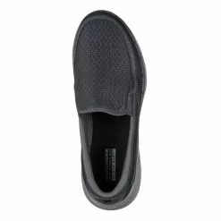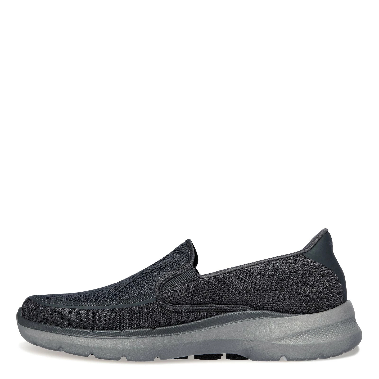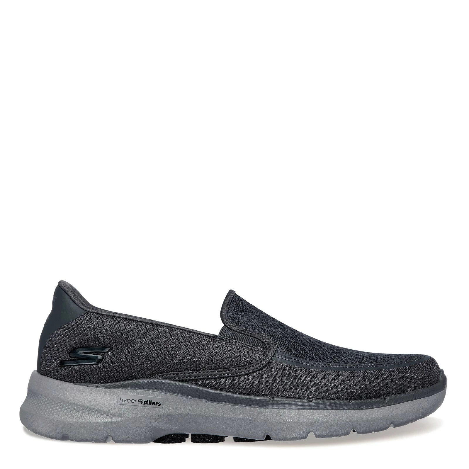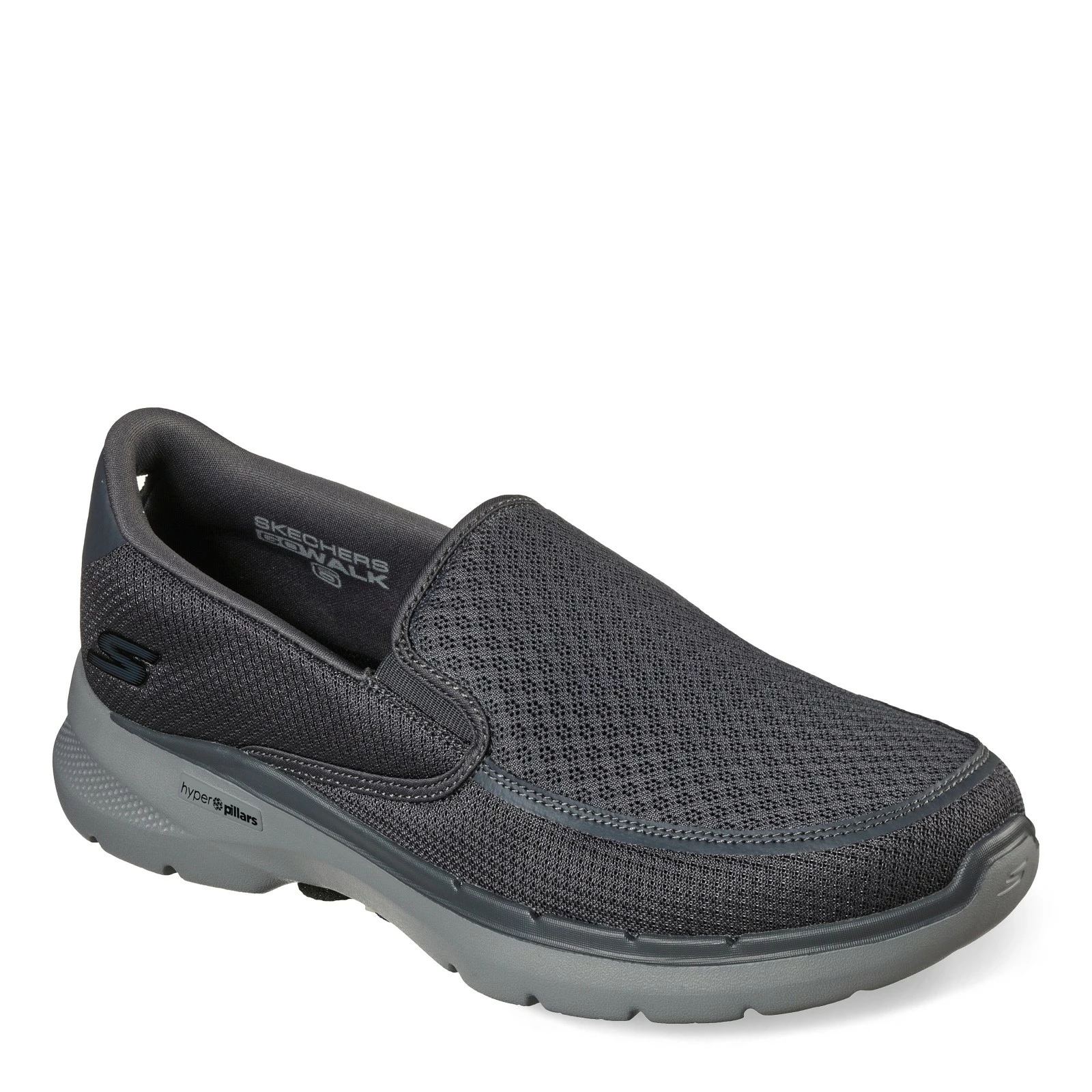 Men’s Skechers, GOwalk 6 – Orva Slip-On – Wide Width. This slip-on sneaker features an engineered flat knit upper with an Air Cooled Goga Mat insole, ULTRA GO cushioning, and high rebound Hyper Pillar Technology for added support. The lightweight and flexible construction makes this shoe perfect for walking around the neighborhood or the whole city.