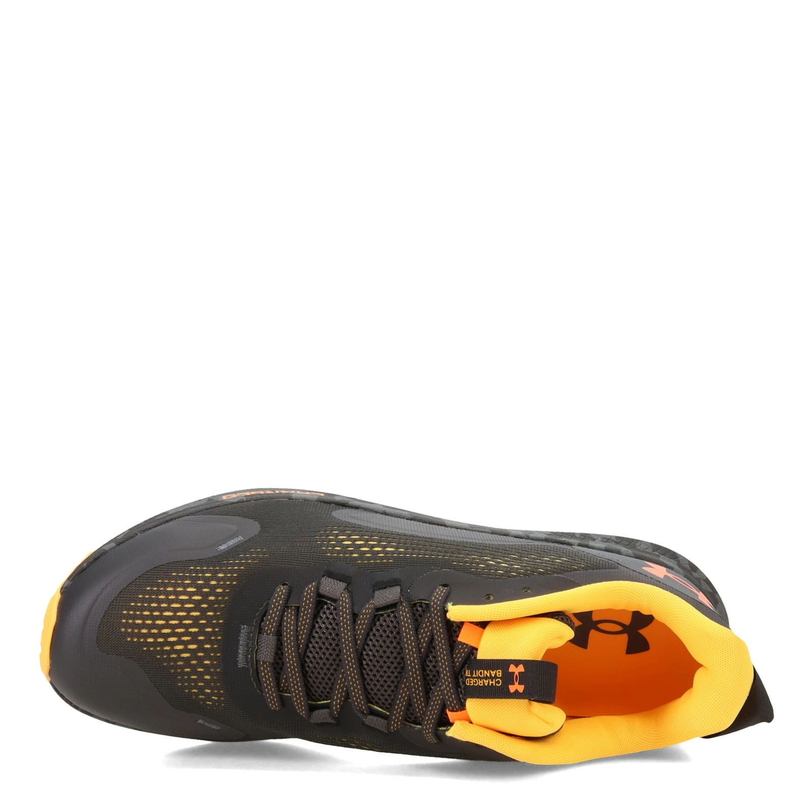 Men’s Under Armour, Charged Bandit 2 Trail Running Shoe. Charge onto the trail in these functional running shoes. They feature a light and breathable engineered mesh upper, durable outsole with technical trail lugs for ultimate traction when going up and down the trails, and strategic overlays for added durability and protection in high-abrasion areas.