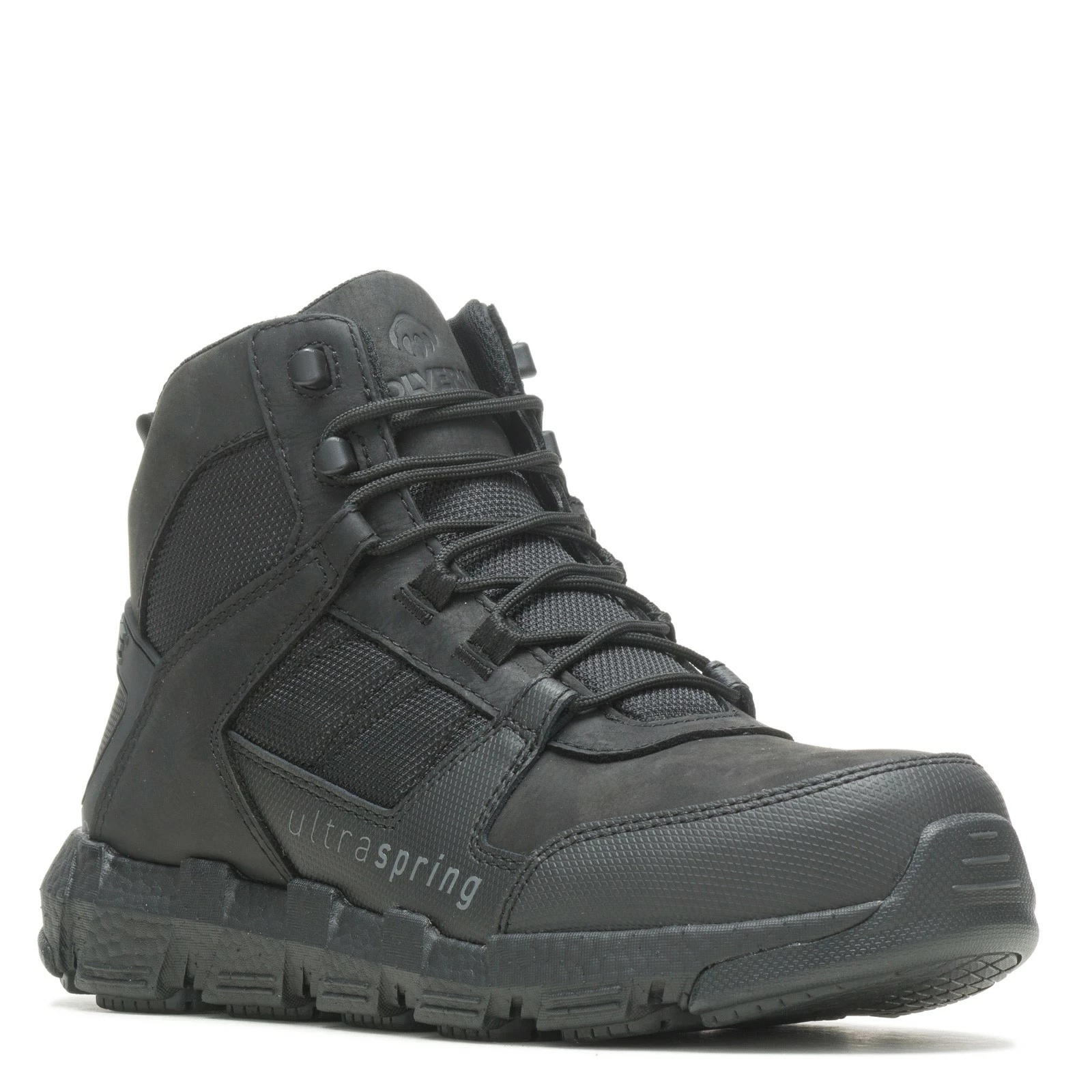 Men’s Wolverine, Rev UltraSpring DuraShocks Vent Composite Toe Boot. The Rev UltraSpring DuraShocks Boot is built with the comfort and support you need, without sacrificing lightweight responsiveness or extreme cushioning. Built with Wolverine’s best-known comfort technology, DuraShocks Flex, the Rev absorbs shock for long days on your feet.