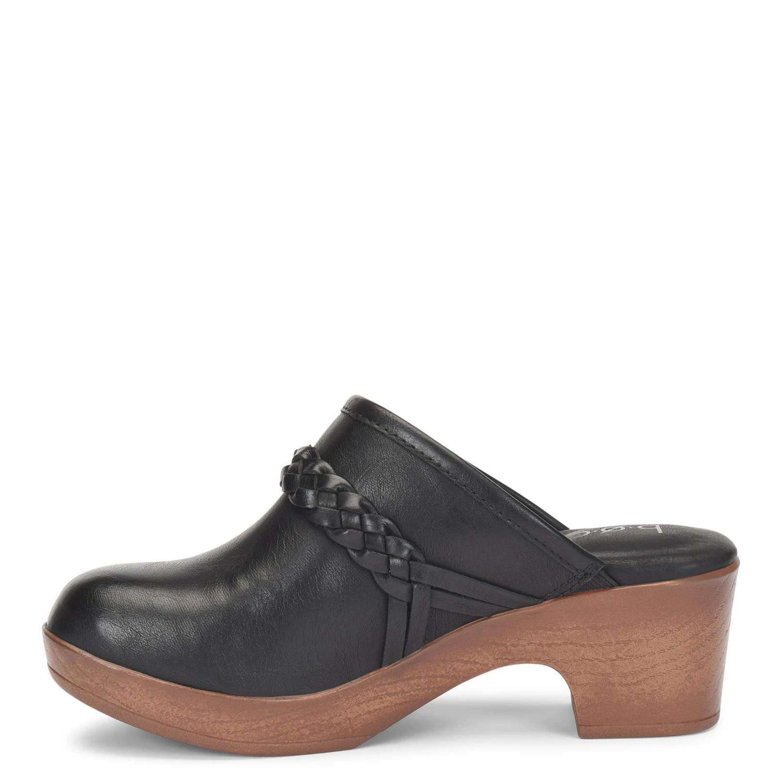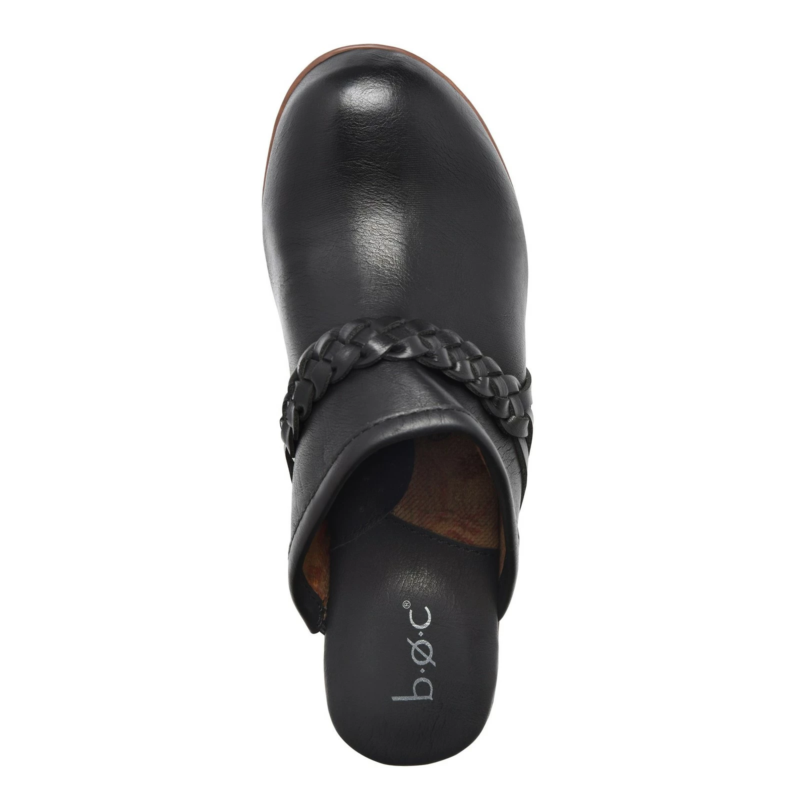 Women’s b.o.c, Journi Clog. The Journi Clog has a burnished hand-finished upper and features pretty braided accents and a floral printed velvet lining. The soft footbed with extra foam provides added comfort while the wood grain design heel and wedge add style.