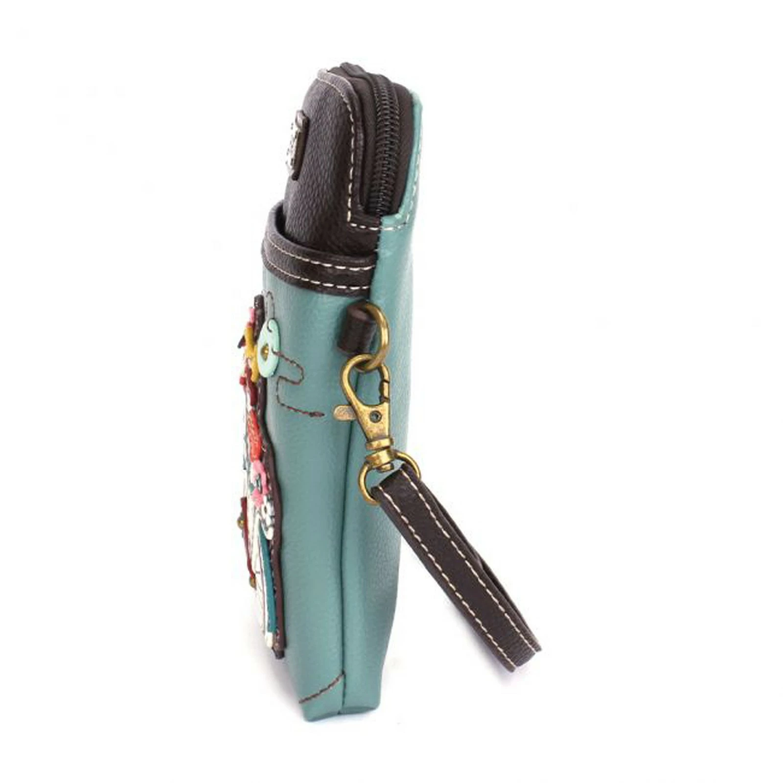 Women’s Chala, Cell Phone Crossbody. The Chala Cell Phone Crossbody bag is a small leather bag that easily holds your cell phone and your cards. This cell phone cross body bag is stylish and will definitely turn heads, with its front pocket decorative pattern.
