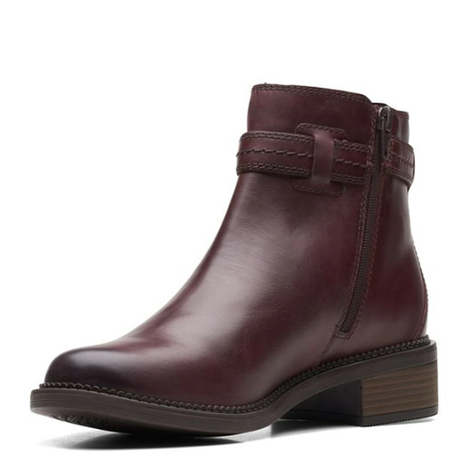 Women’s Clarks, Maye Ease Boot. Take the next step in style with the Maye Ease boot from Clarks. The beautifully crafted leather upper features a decorative ankle strap for added interest.