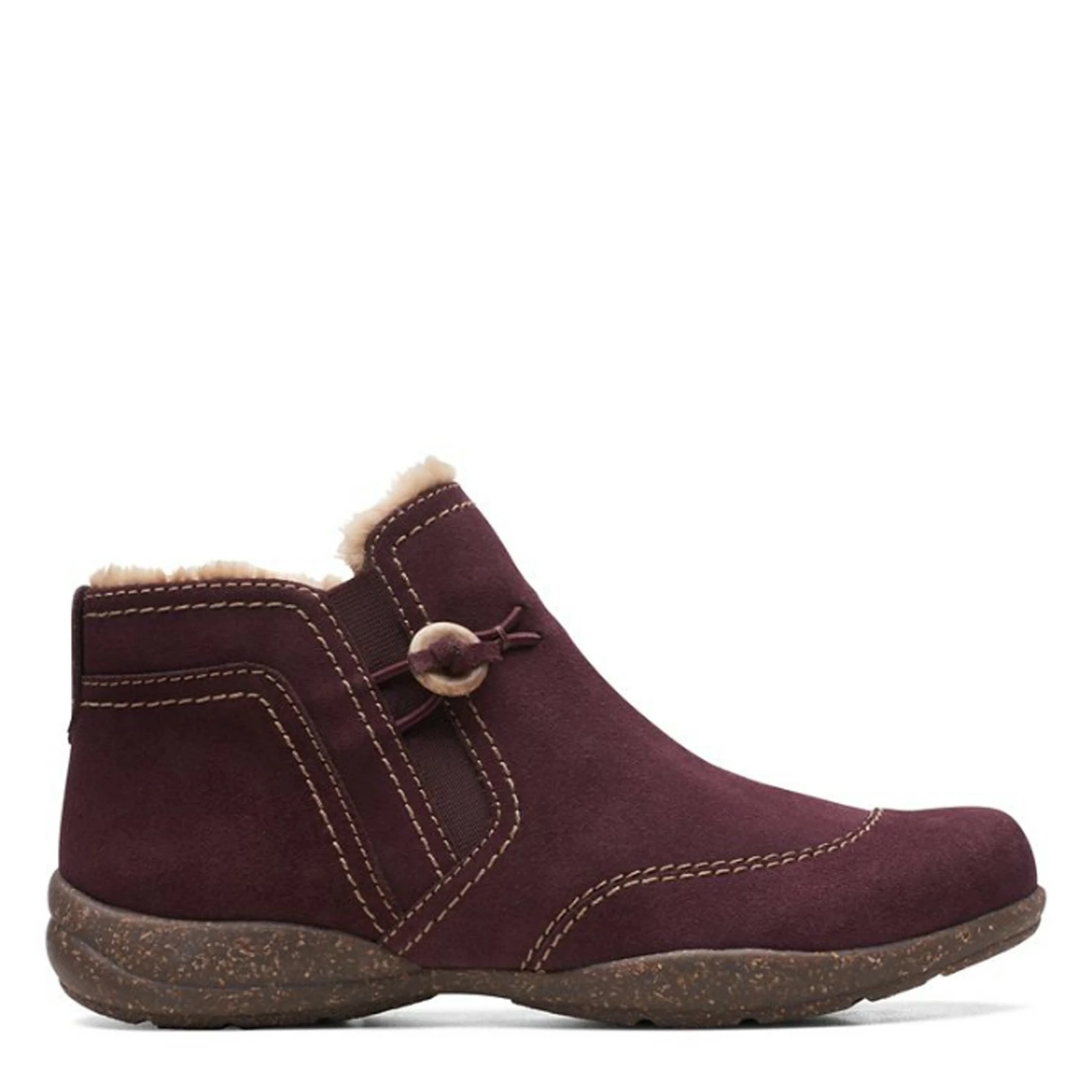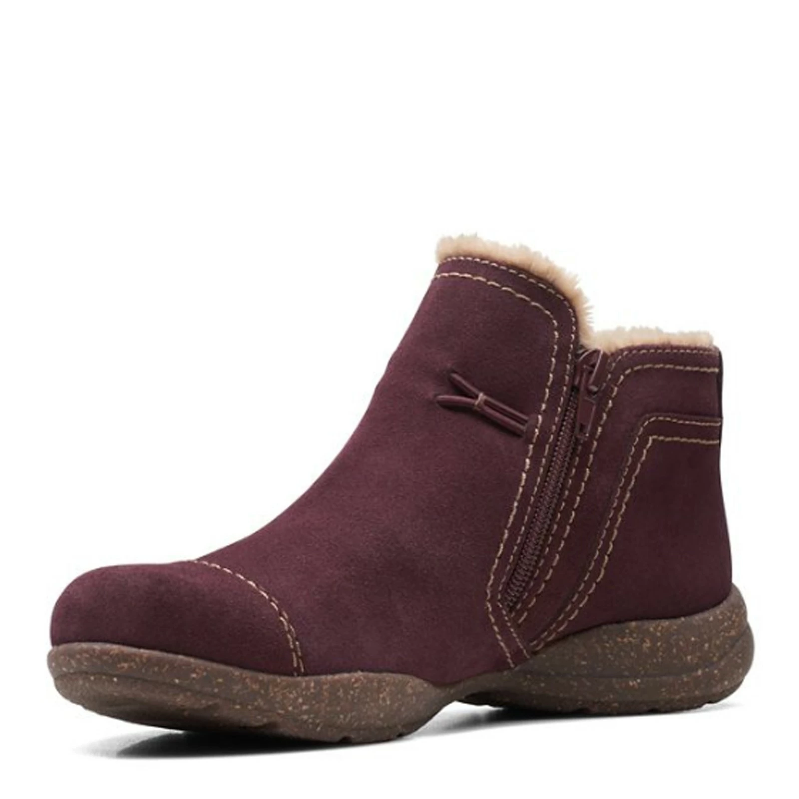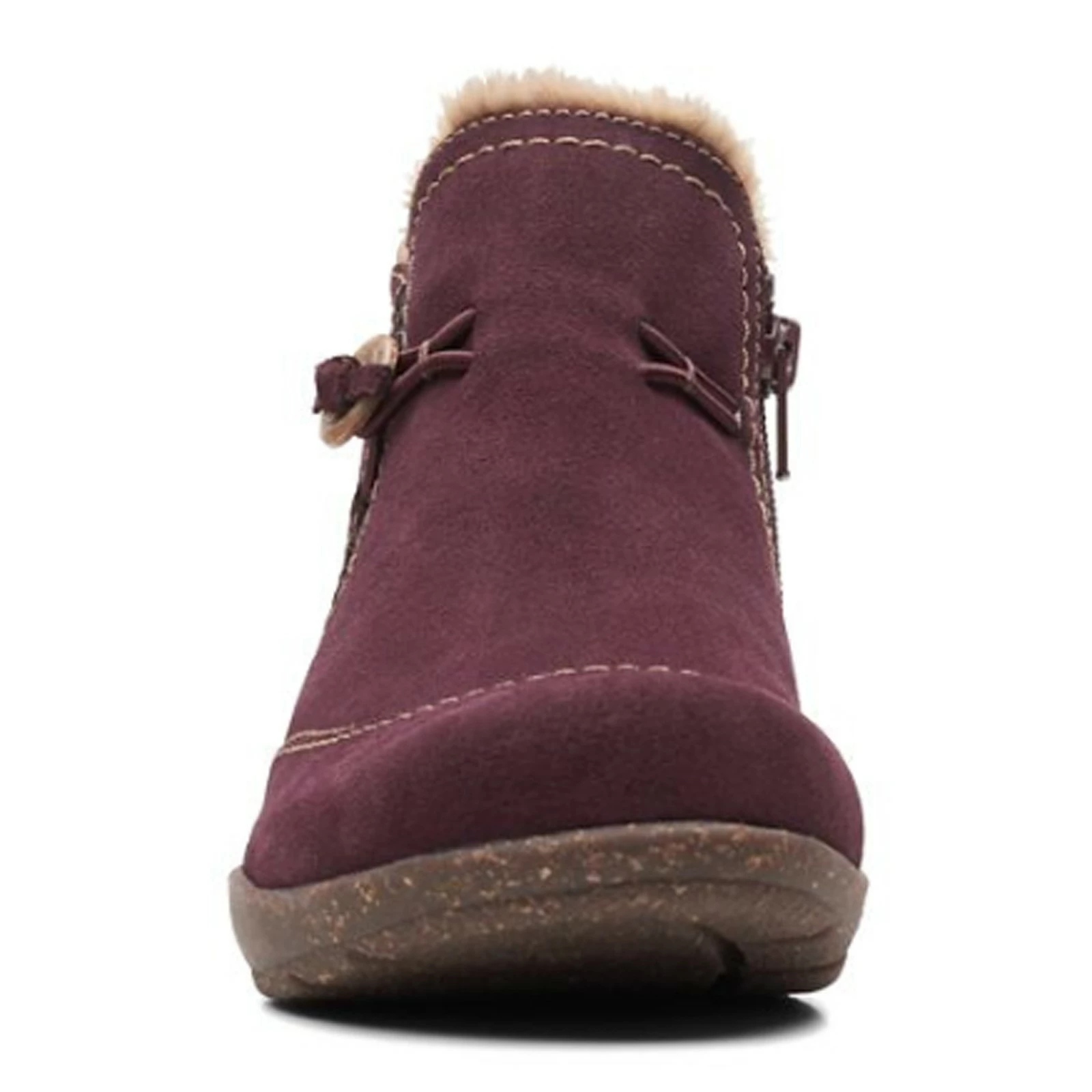 Women’s Clarks, Roseville Aster Bootie. Treat your feet to a cushioned style with the Roseville Aster from Clarks. It features a suede or leather upper with a soft faux fur lining for cozy warmth.
