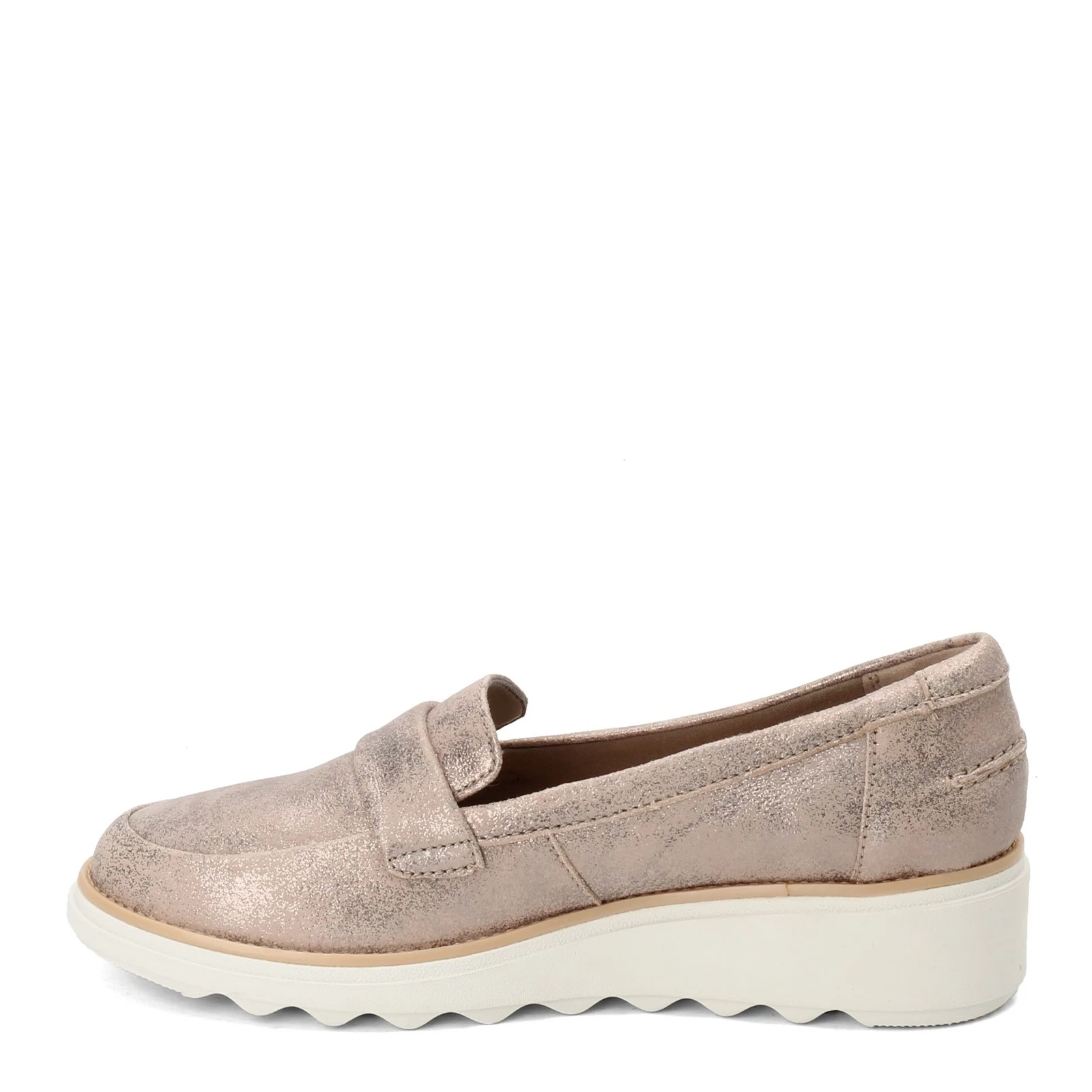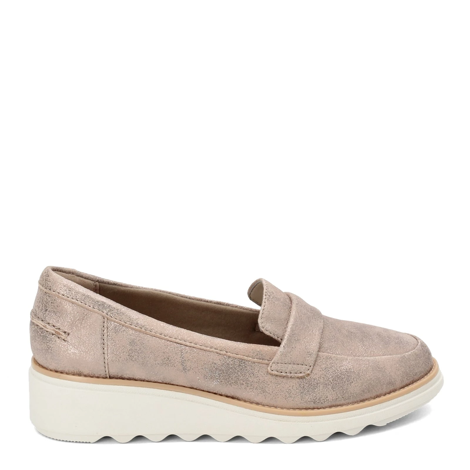 Women’s Clarks, Sharon Gracie Slip-On. A modern styled loafer with a lightweight and sporty outsole. Slip on this comfortable wedge loafer for all day fashion and support.