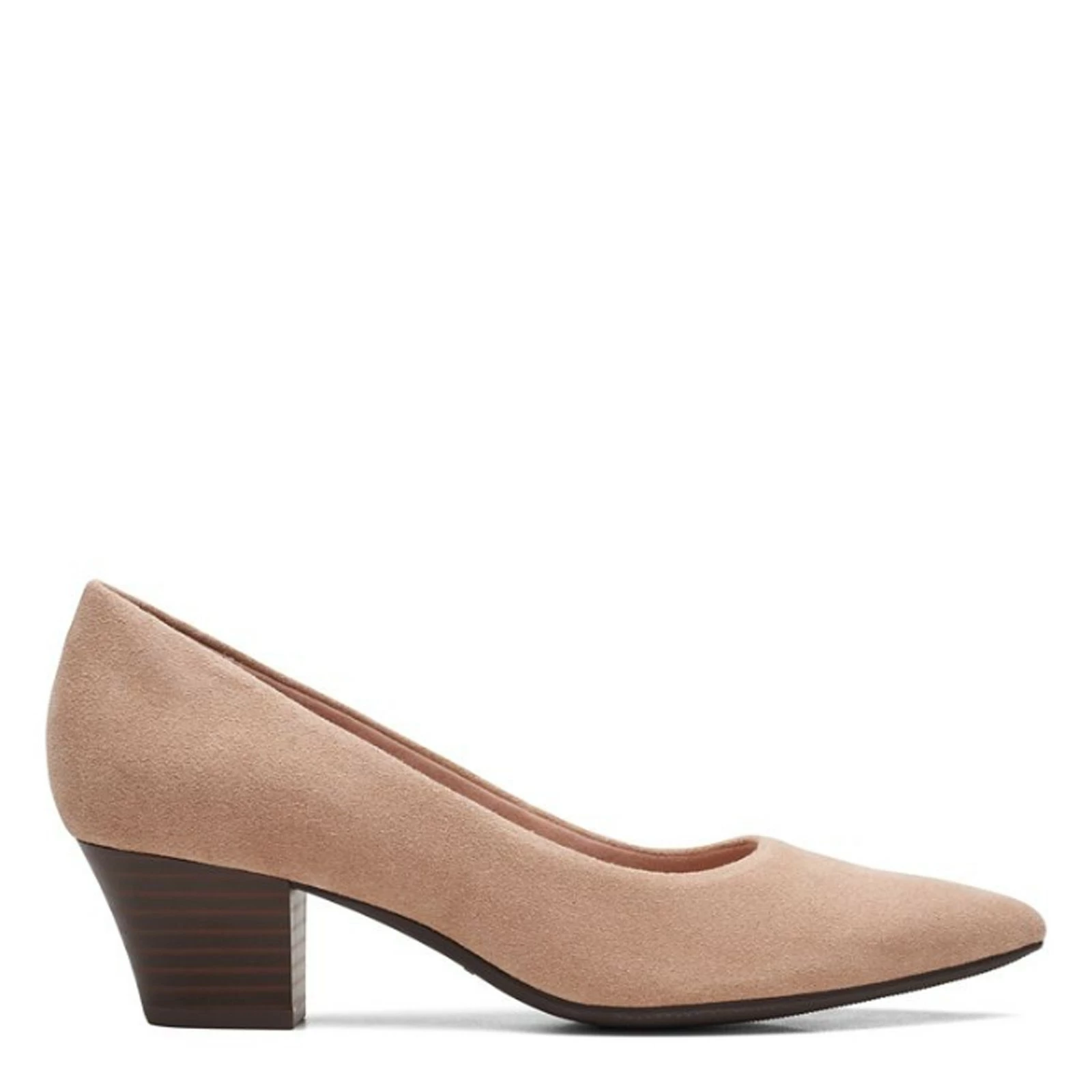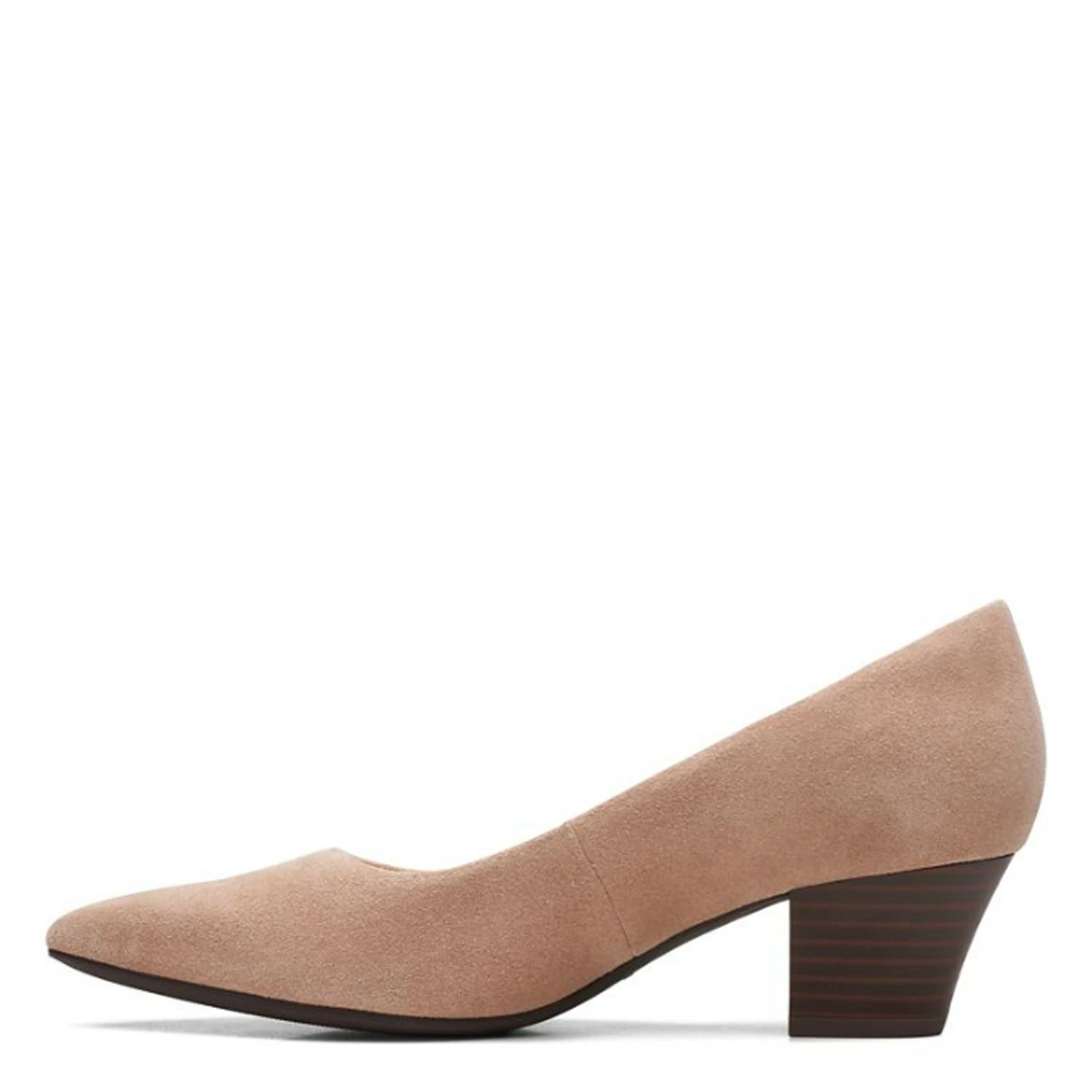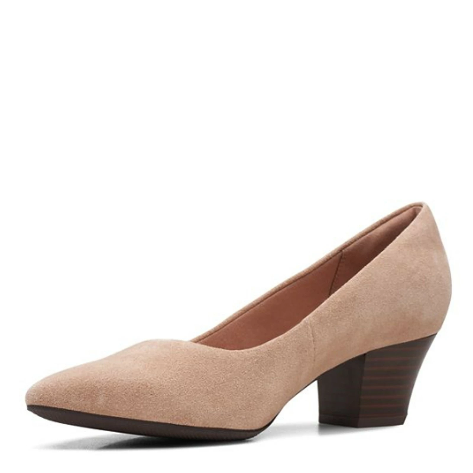 Women’s Clarks, Teresa Step Pump. Make a classy statement with the pointed toe Teresa Step pump. This classic leather slip-on is elevated with a stacked heel and topped with a cushioned footbed for added comfort.