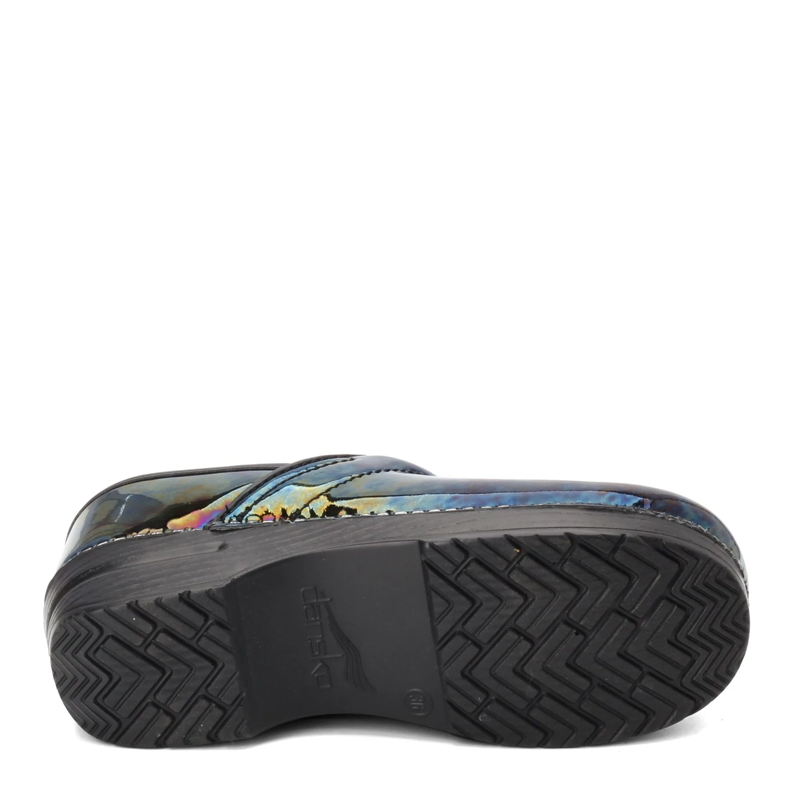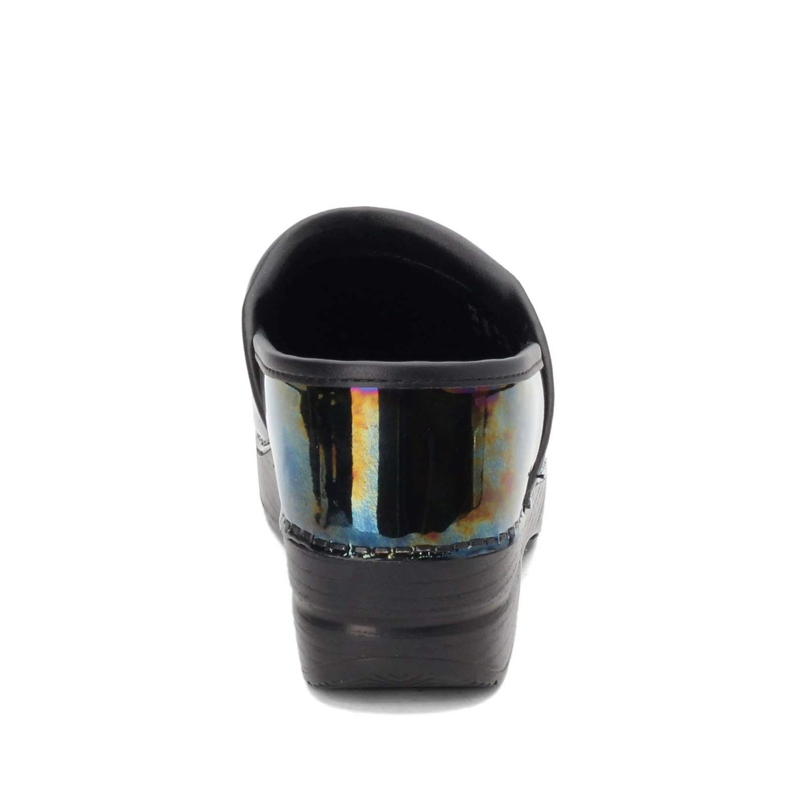 Women’s Dansko, Professional Clog. A closed back comfort clog great for the service or nursing professional. The stunning uppers with a shiny rainbow effect will put a smile on the face of everyone you meet.