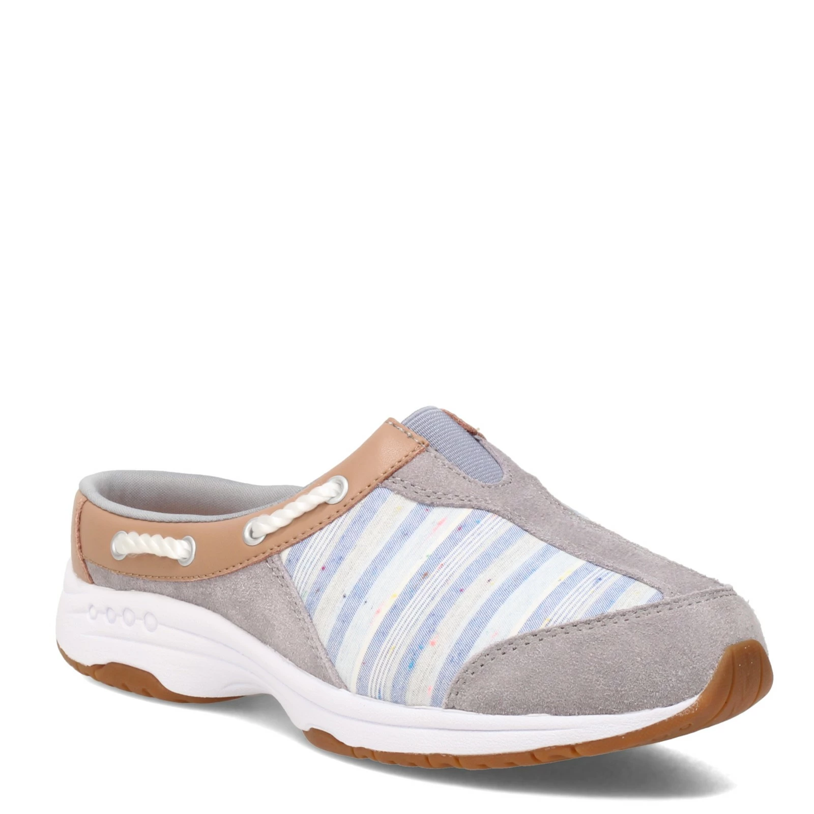 Women’s Easy Spirit, Travelknot Clog. Give your weekend look a boost with these comfortable slip-on sneakers! Sleek and casual, they feature 360 degree lacing and a sculpted EVA midsole and rubber sole that provide cushioned walking and rebound with each step.