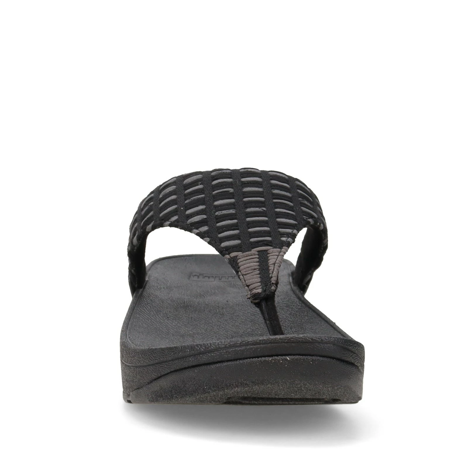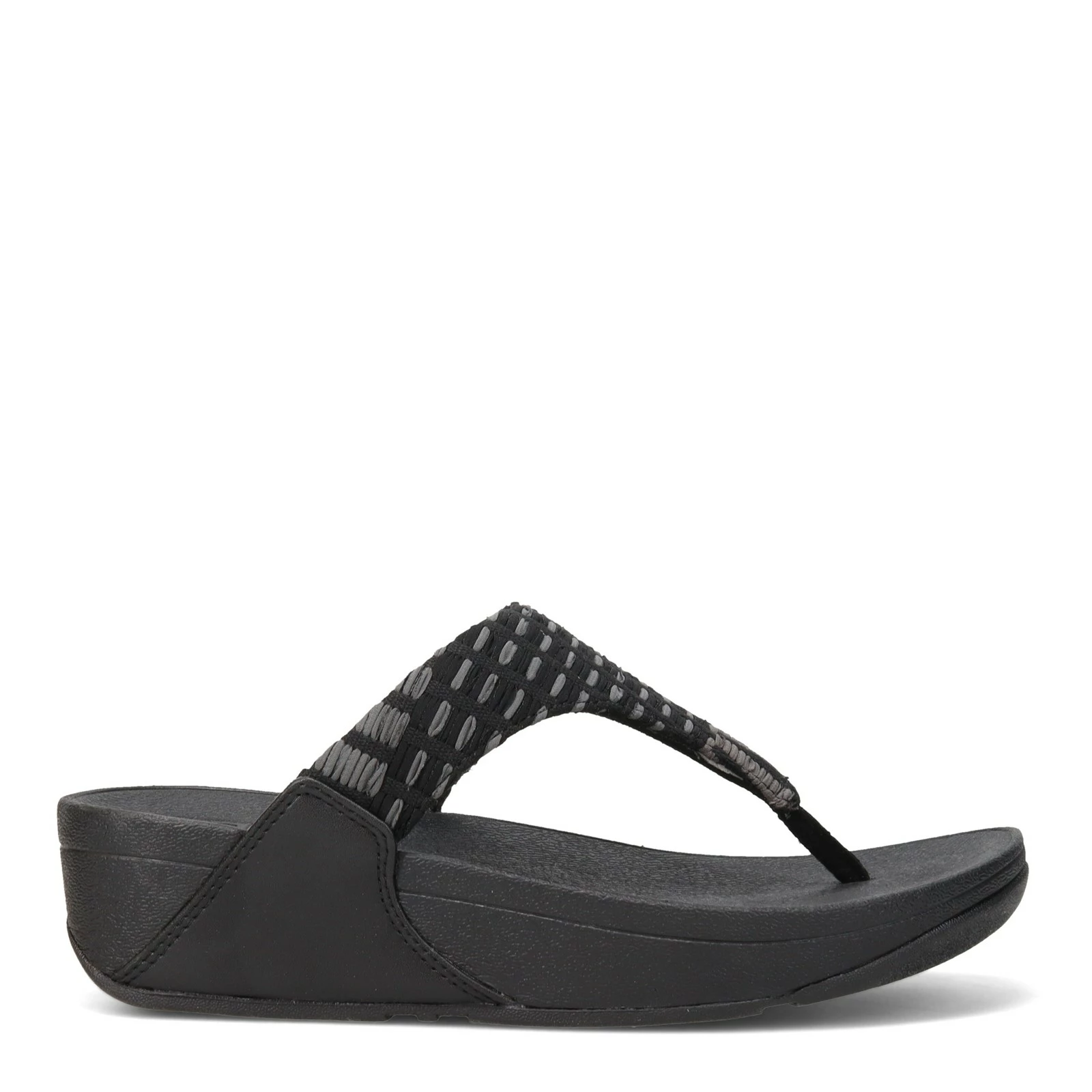 Women’s FitFlop, Lulu Art Denim Thong Sandal. The perfect sandal for everyday wear. Triple density Microwobbleboard midsole delivers comfort by helping absorb shock and diffusing underfoot pressure.