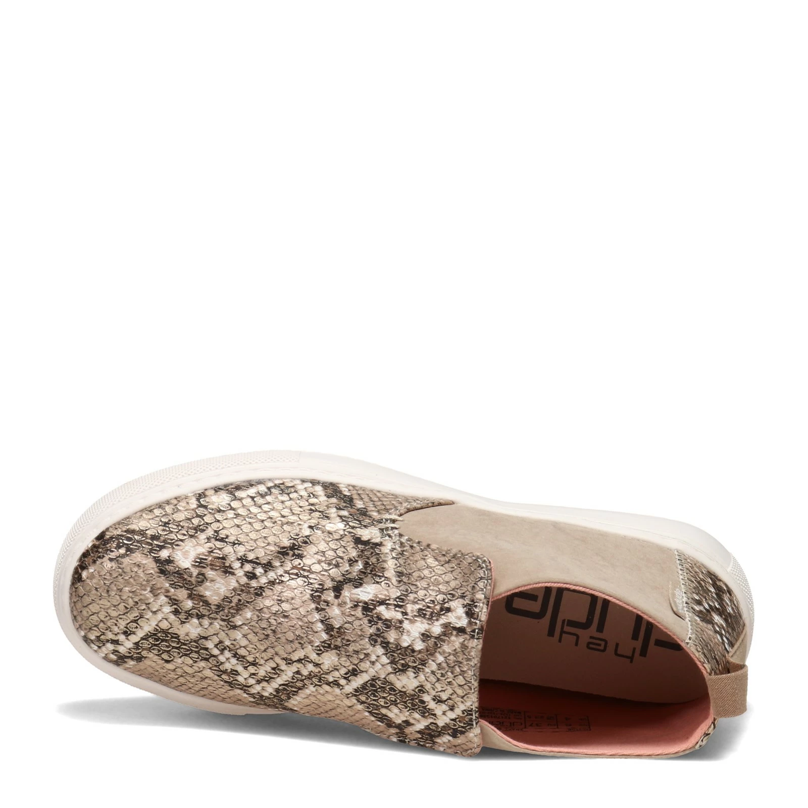 Women’s Hey Dude, Peyton Slip-On. The Peyton Slip-On bootie features an ultra-lightweight, shock absorbing outsole, and is perfect for any occasion. A silhouette that won’t sacrifice style for comfort, the Peyton easily transitions from work to play.