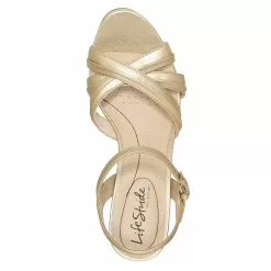 Women’s LifeStride, Maebree Sandal. Dress to impress in the LifeStride Maebree Sandal. This chic, strappy sandal features soft faux leather or satin fabric uppers with an open toe and a metallic buckle for extra shine. A sling-back strap and pleated vamp add glamour to this unique style, which boasts a Soft System comfort package.