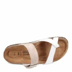 - Naot’s suede wrapped anatomic cork and latex footbed molds to the shape of the foot
