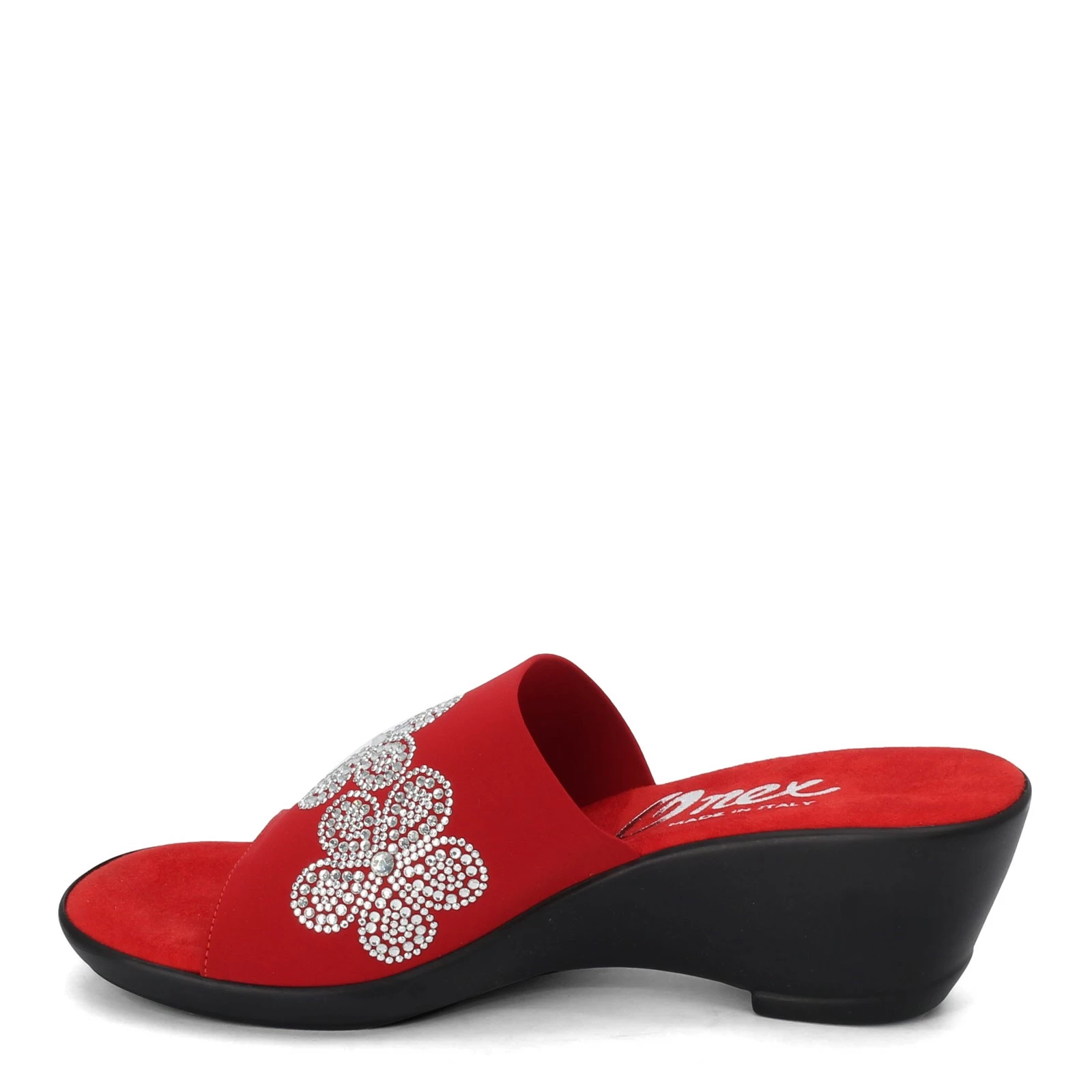 Women’s Onex, Rory Sandal. This dressy slide sandal style features dazzling rhinestone accents for a sparkly look. Pair these beautiful sandals with dresses or pants for an evening out on the town.