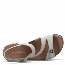 Women’s Romika, Fidschi 54 Sandal. Enjoy the warmer weather in these fashionable low heel sandals. This feminine design features a strappy leather upper with printed midsole and decorative floral button accents.
