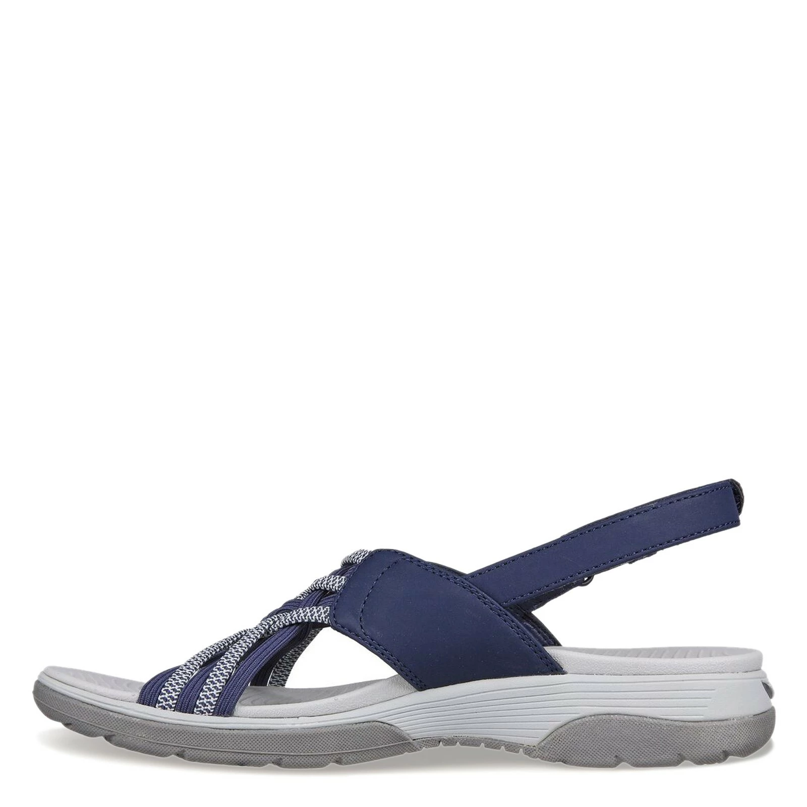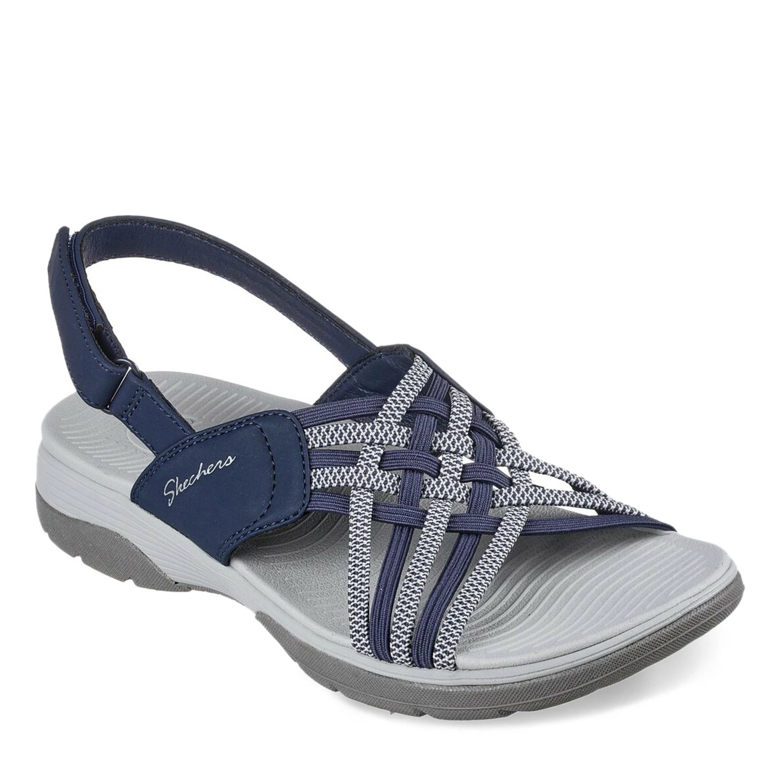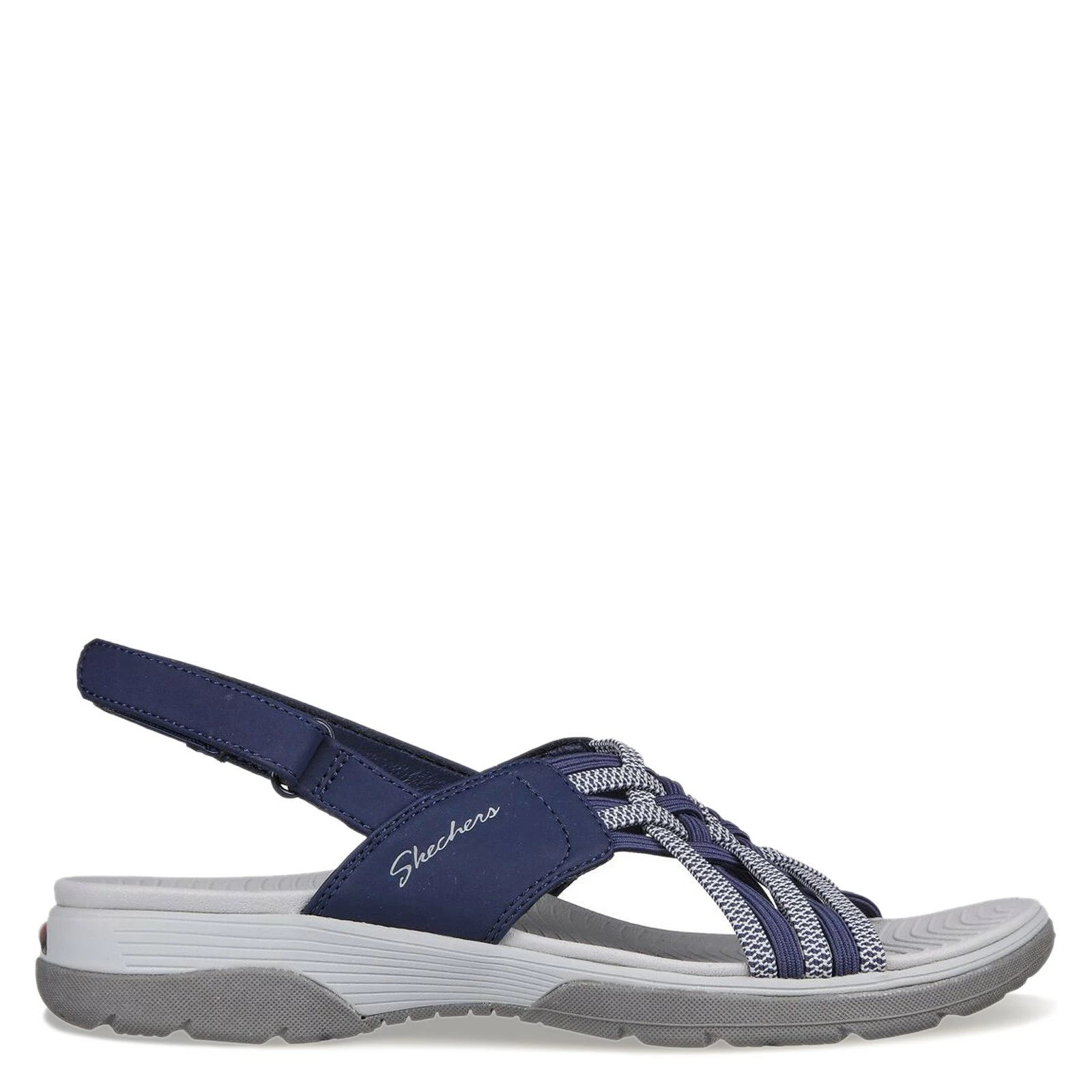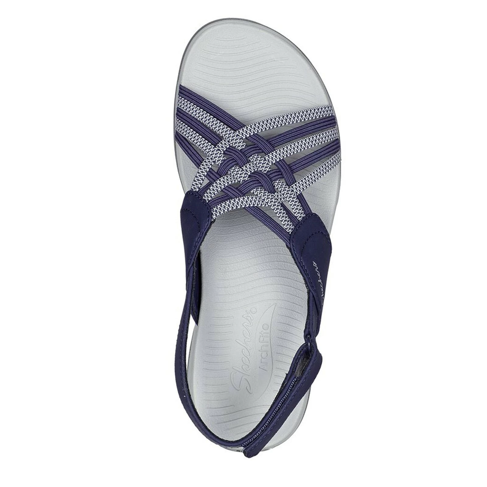 Women’s Skechers, Arch Fit Reggae Sport Sandal. These all-day comfort sandals feature a strappy stretch fabric upper with adjustable sling-back strap closure and a supportive Arch Fit contoured footbed. The podiatrist-designed shape was developed using data from over 120,000 unweighted foot scans.