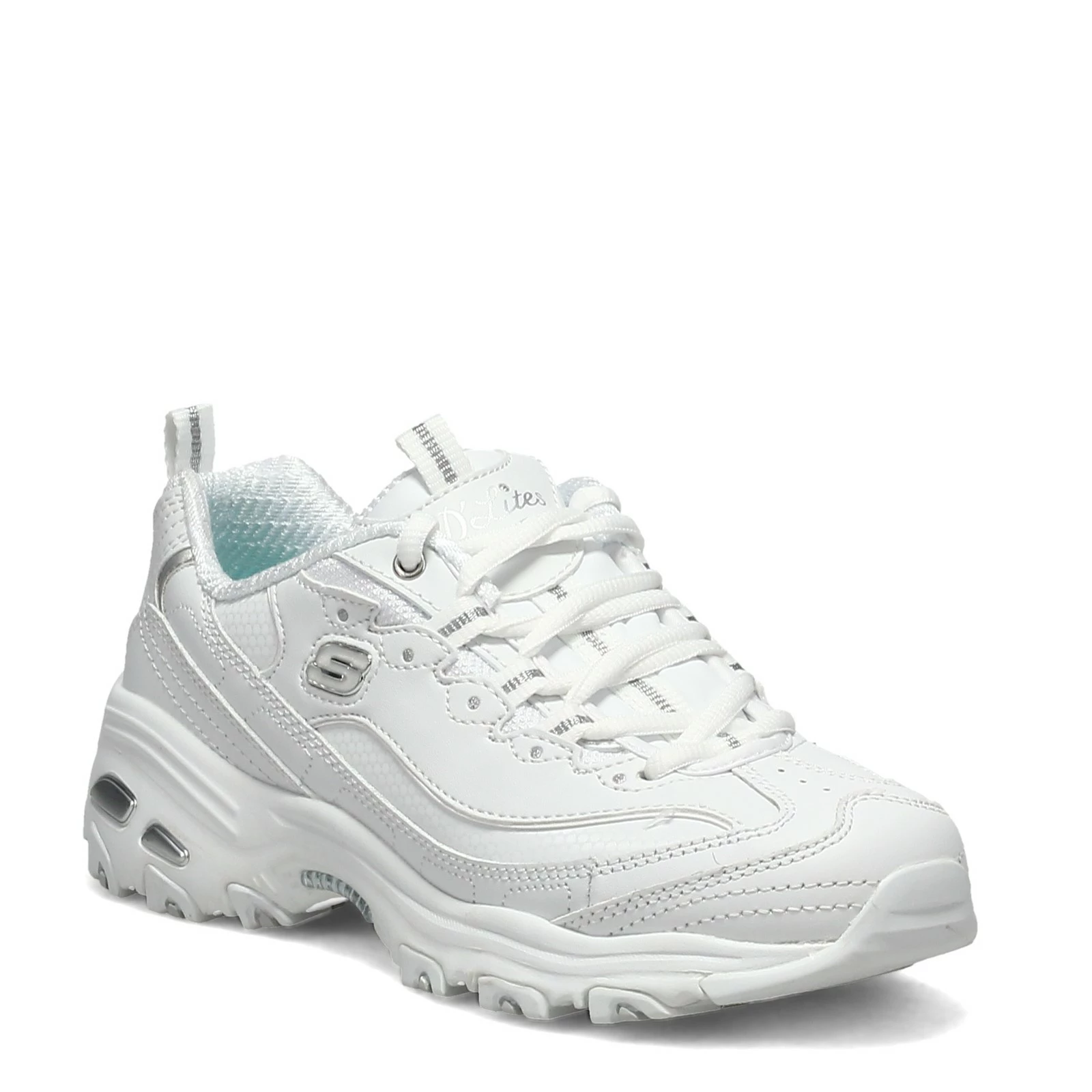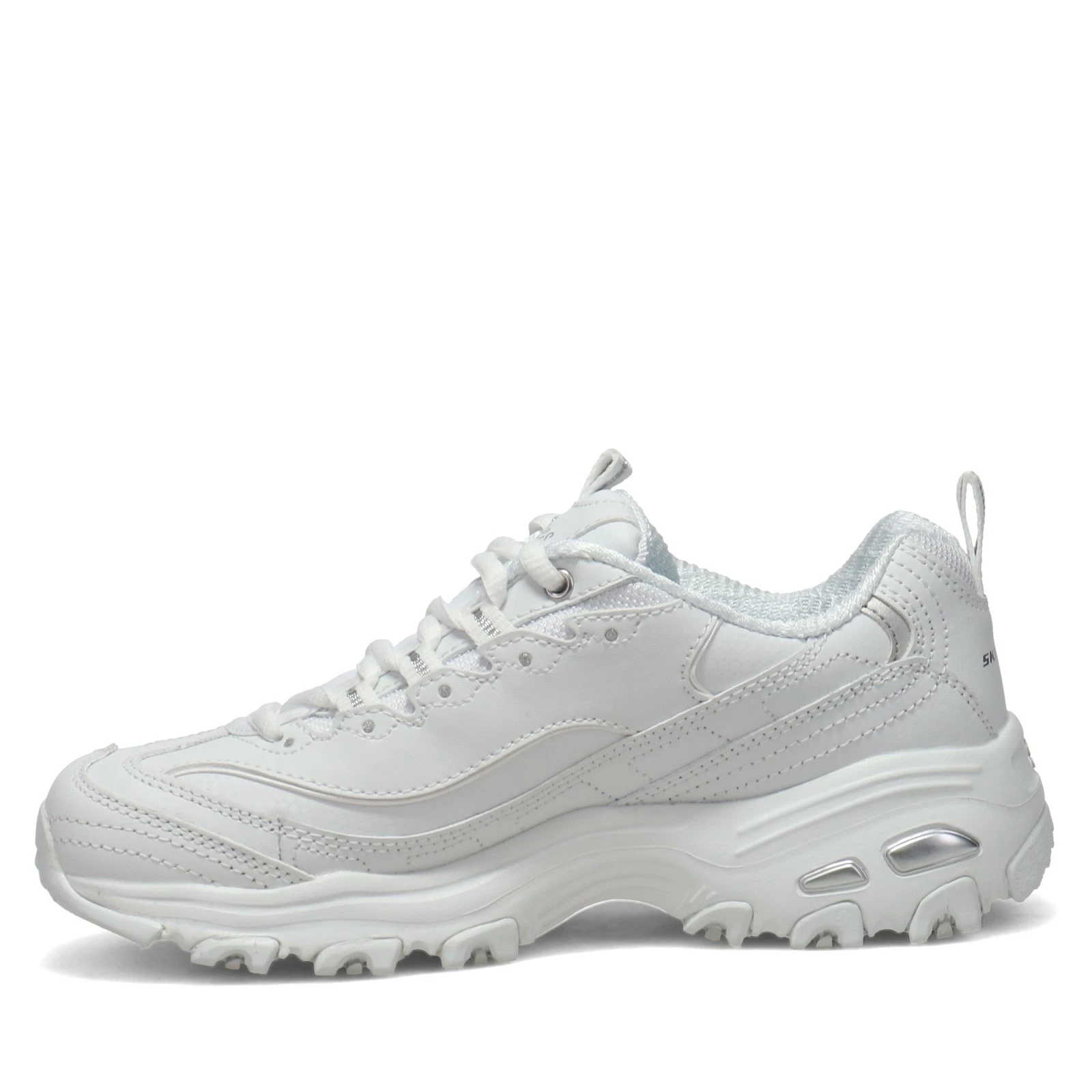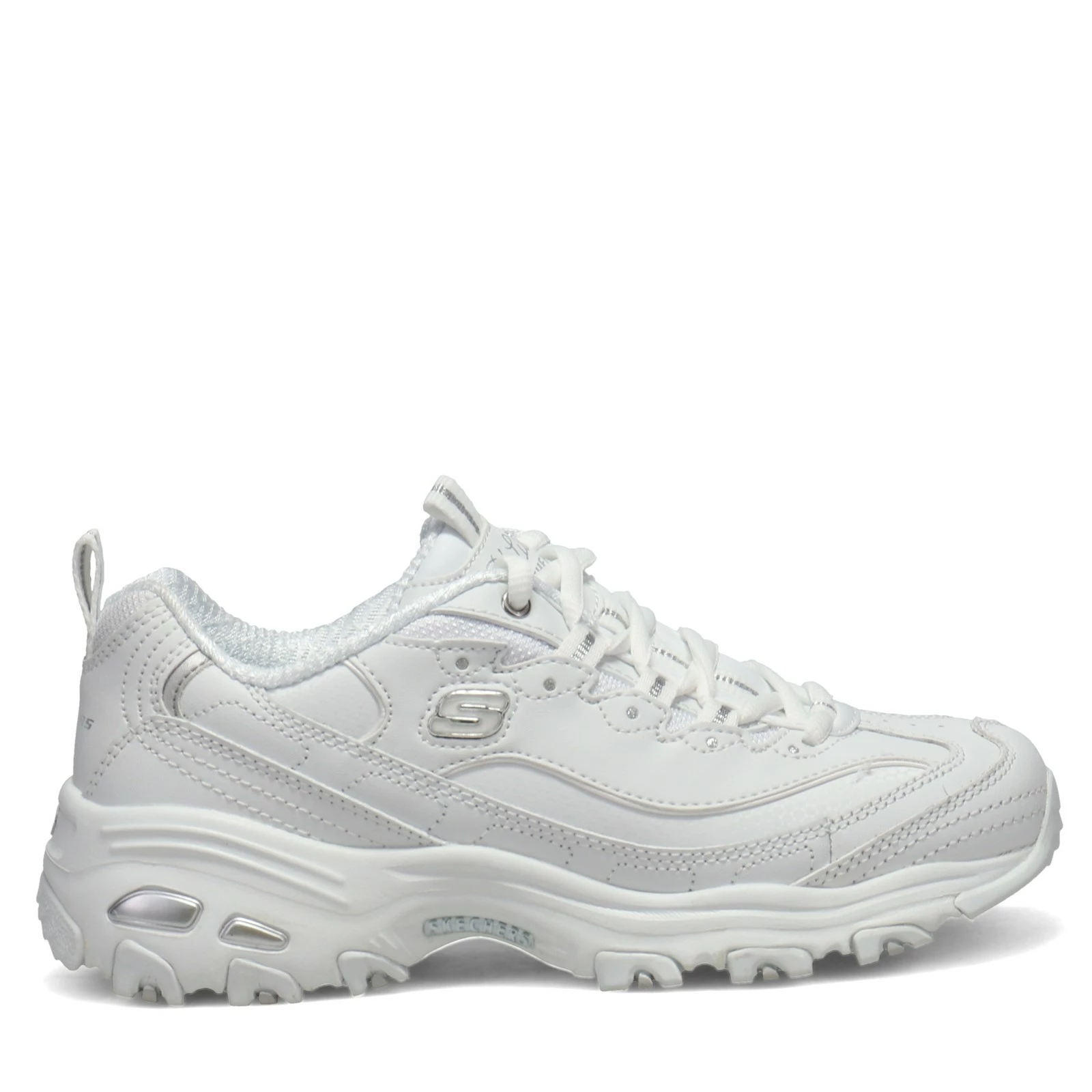 Women’s Skechers, D’Lites – Fresh Start Sneaker. Feel great wearing this highly cushioned sneaker with a classic luxe look! The Air-Cooled Memory Foam cushioned comfort insole offers optimal support for casual daily walks.
