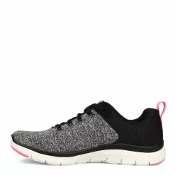 Women’s Skechers, Flex Appeal 4.0 Sneaker – Wide Width. A lightweight and flexible, machine washable sneaker style with an easy going design. The Air-Cooled Memory Foam® cushioned comfort footbed will keep things comfy as you go through your busy day.