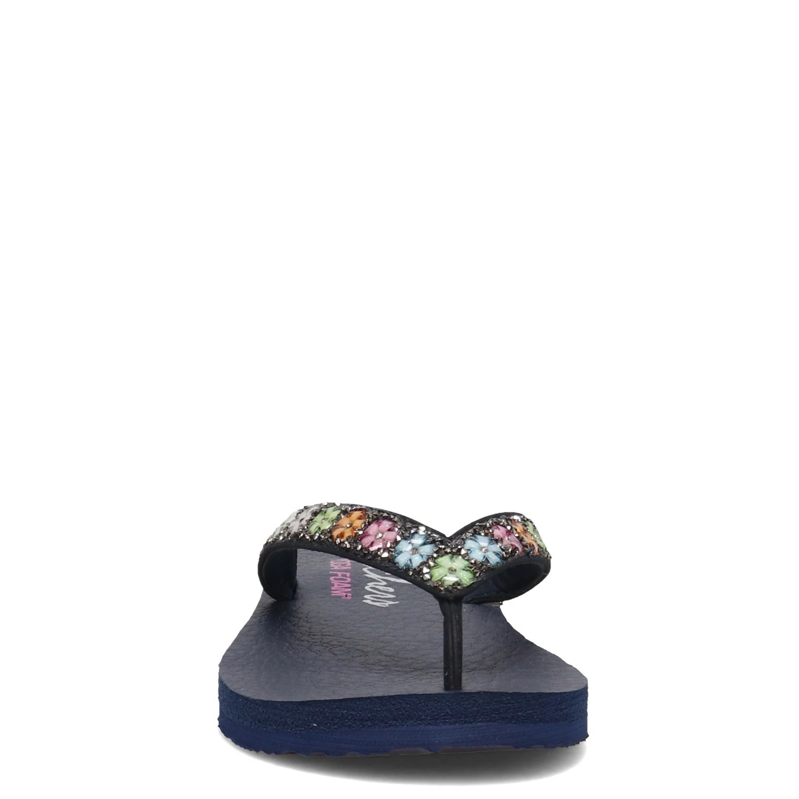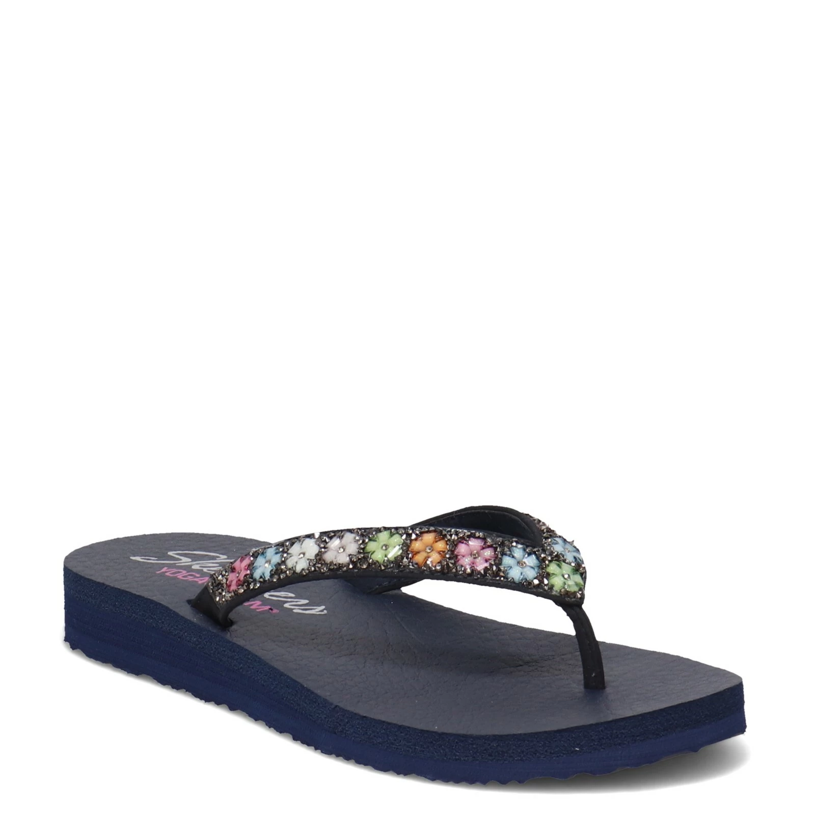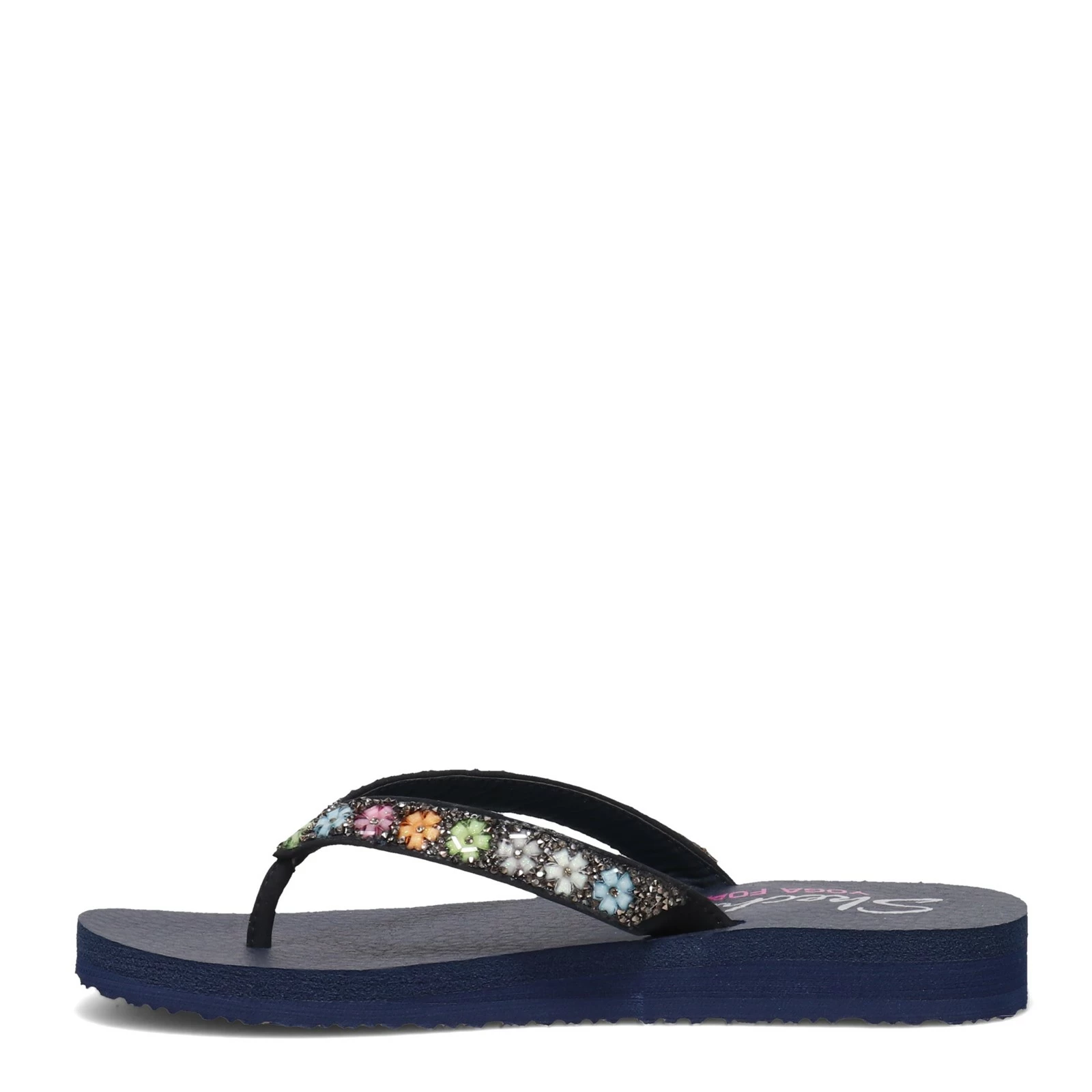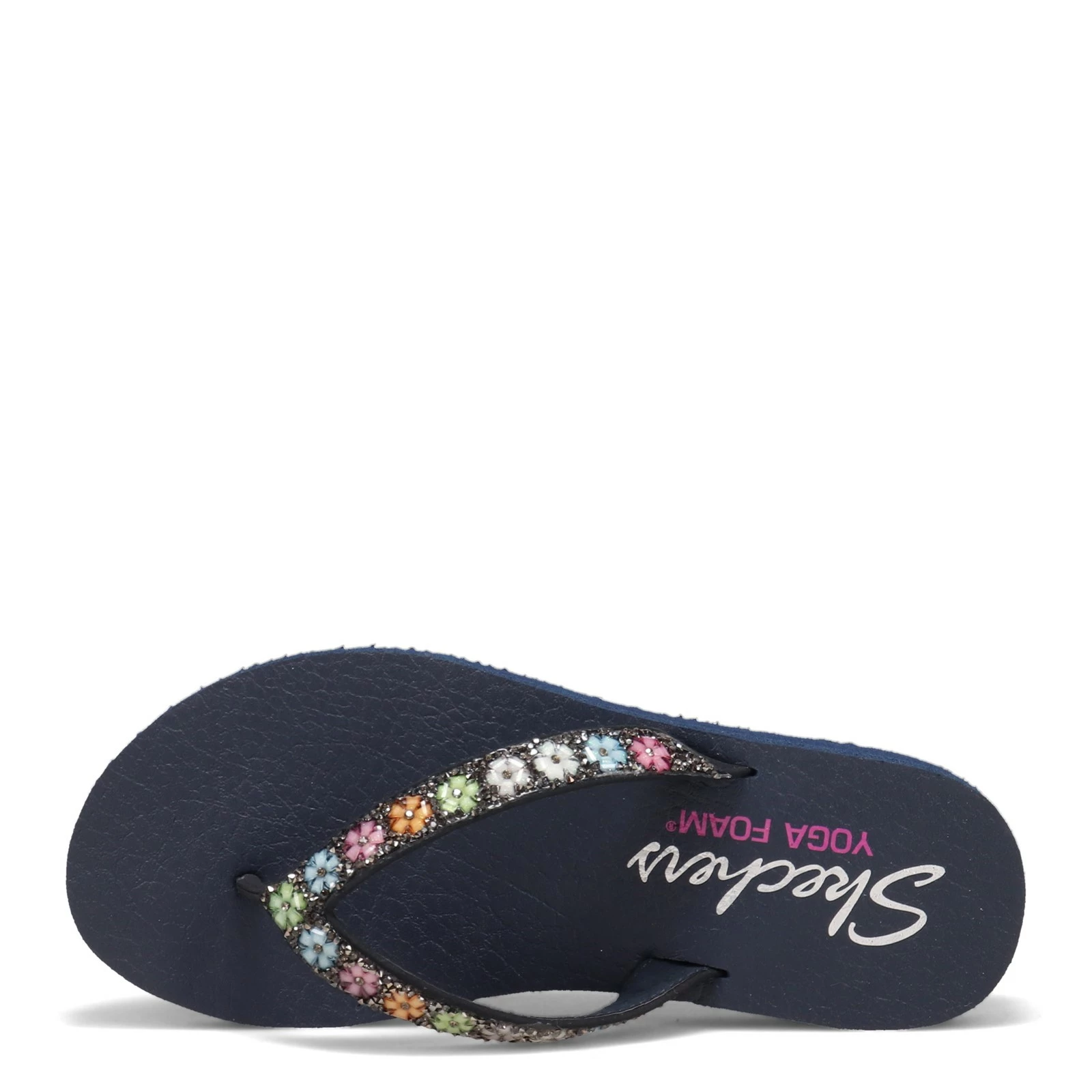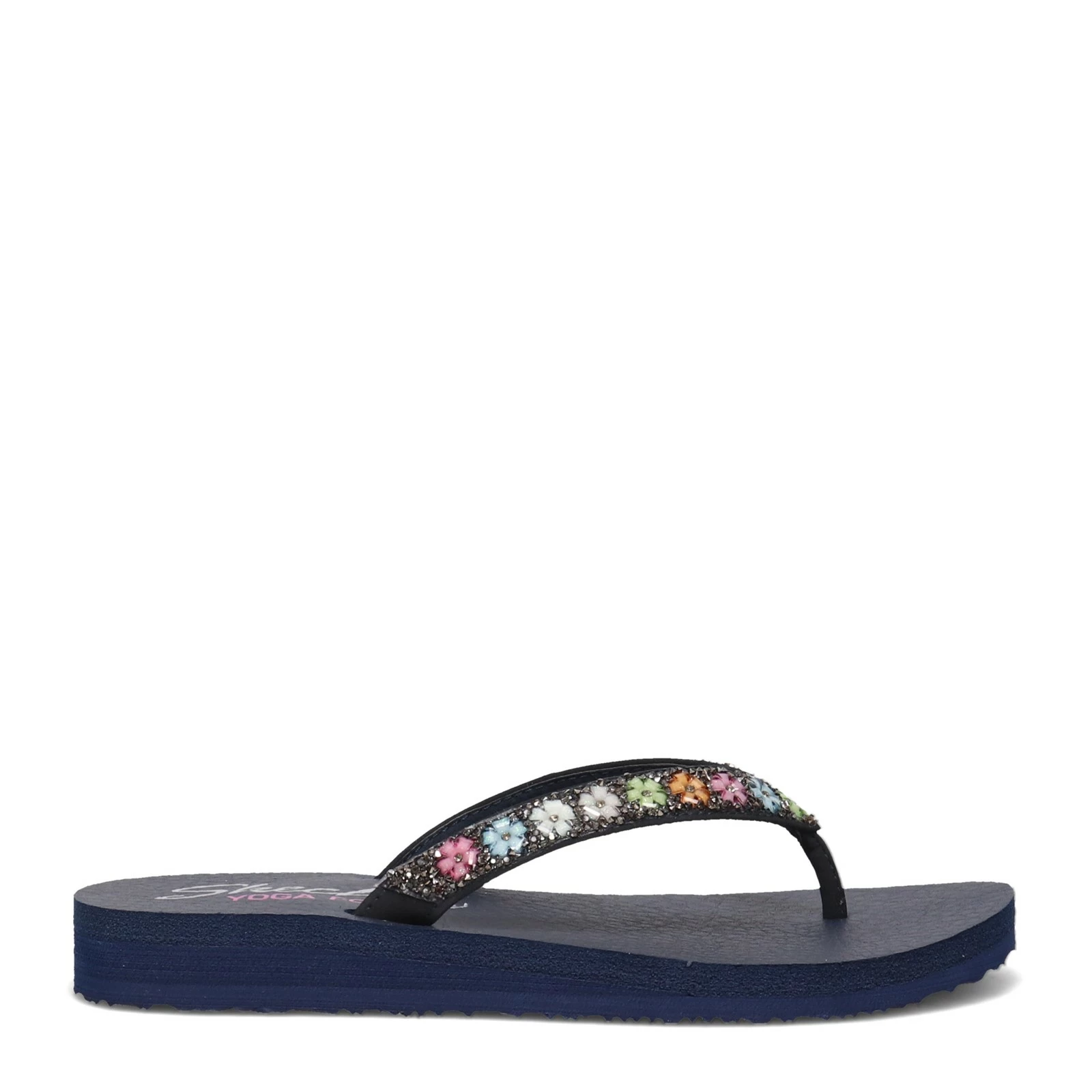 Women’s Skechers, Meditation – Daisy Delight Sandal. This floral flip flop is ready for spring. This flip flop features glitter and flower gem details, plus a Yoga Foam comfort footbed.