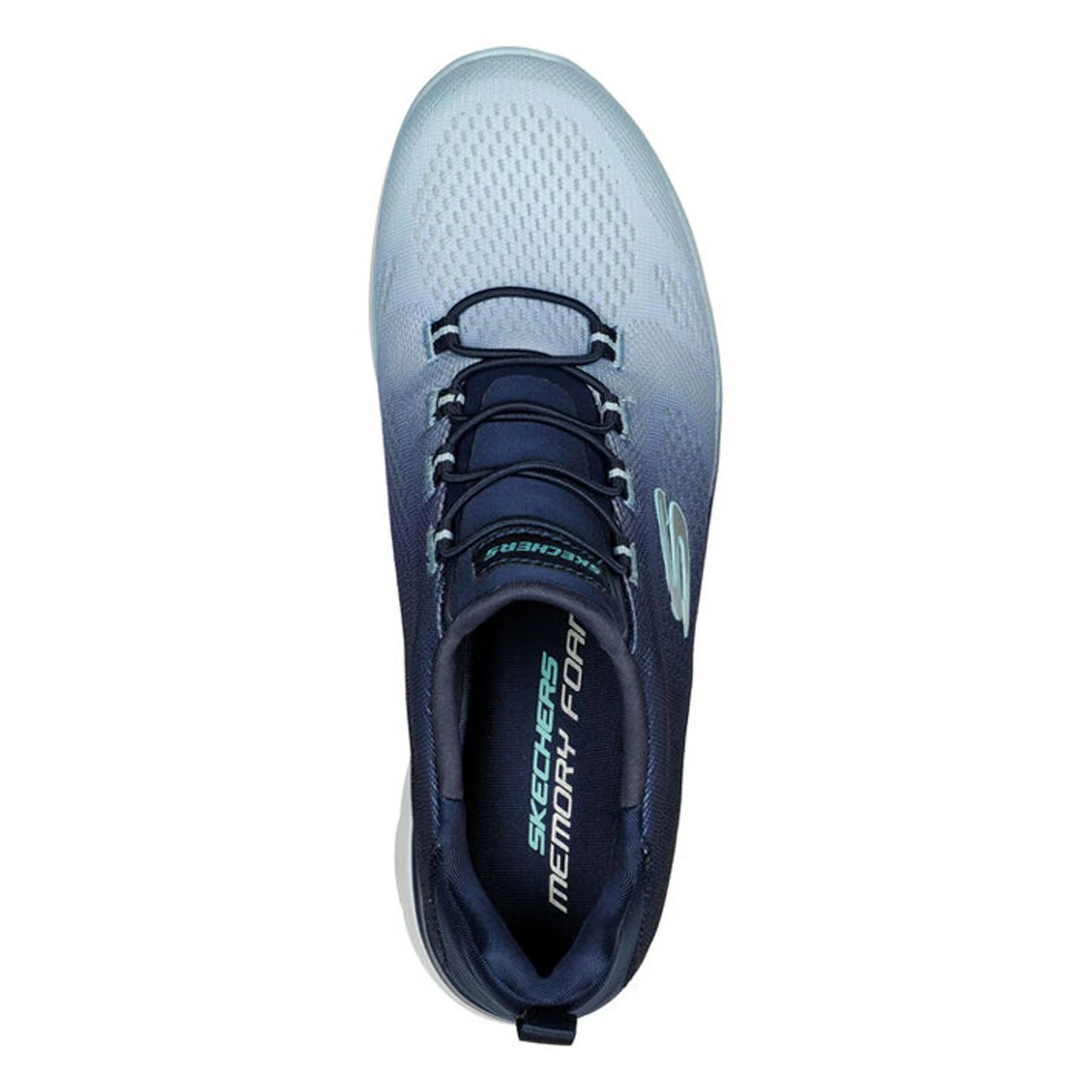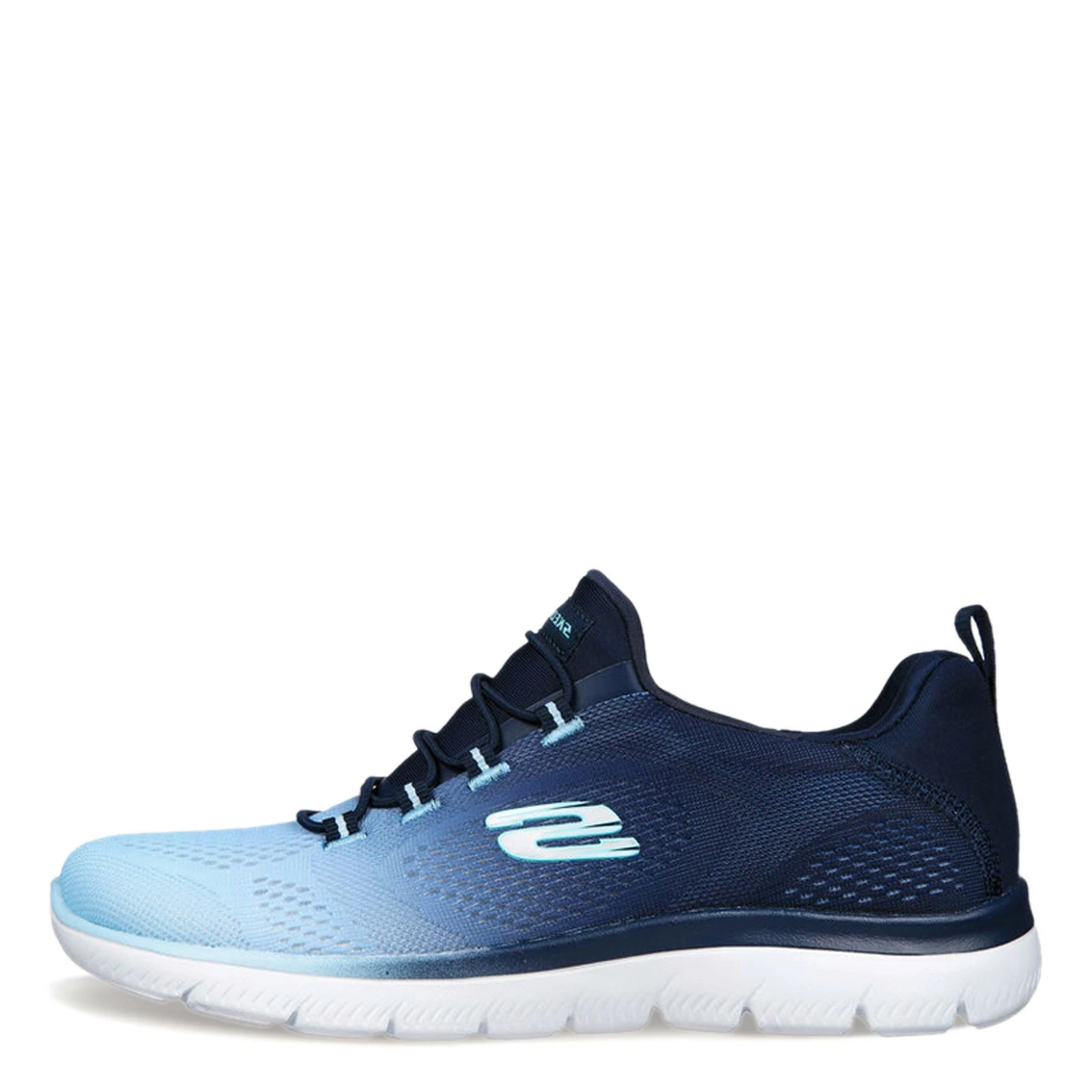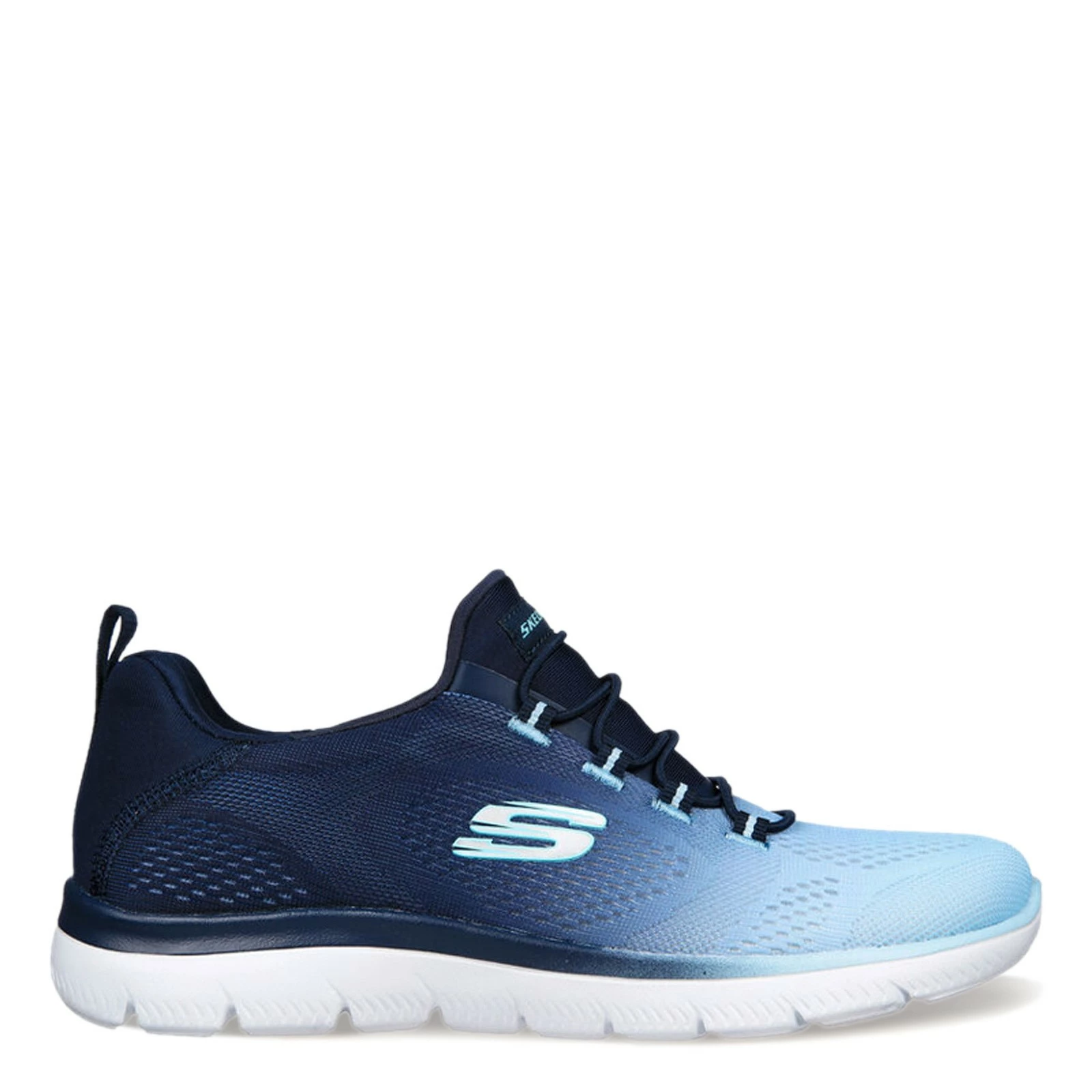 Women’s Skechers, Summits – Bright Charmer Sneaker. This ombre print slip-on features a soft mesh upper with stretch laces and a cushioned Skechers Memory Foam comfort insole. Ease into total comfort in Skechers Summits – Bright Charmer sneaker.
