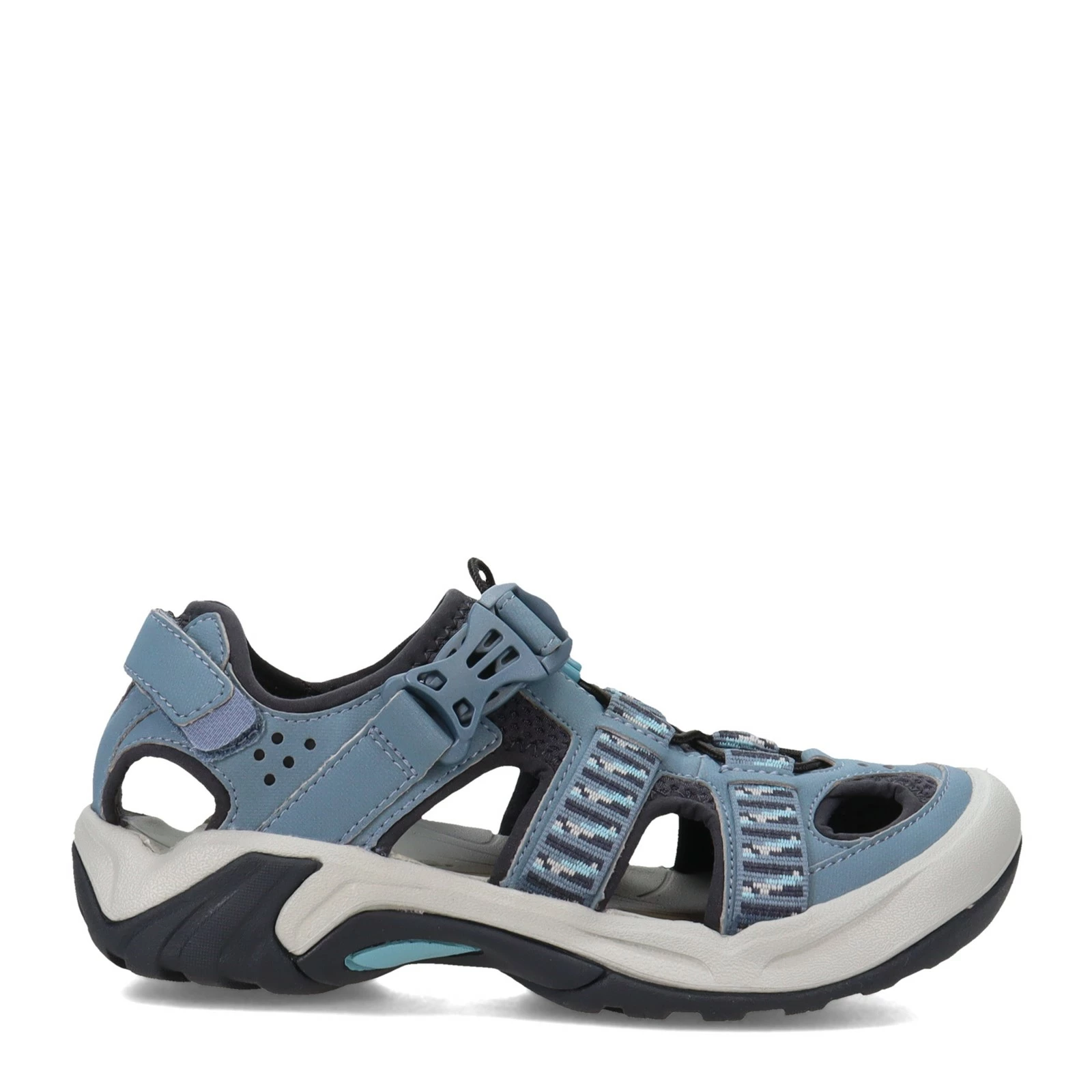 Women’s Teva, Omnium Sandal. The Teva Omnium is a powerful and versatile adventure sandal that will take you to the river and beyond with ease. A vigorous water shoe, the Omnium’s synthetic uppers feature 360-degree venting, drainage ports on both central side straps and spider original rubber outsoles.