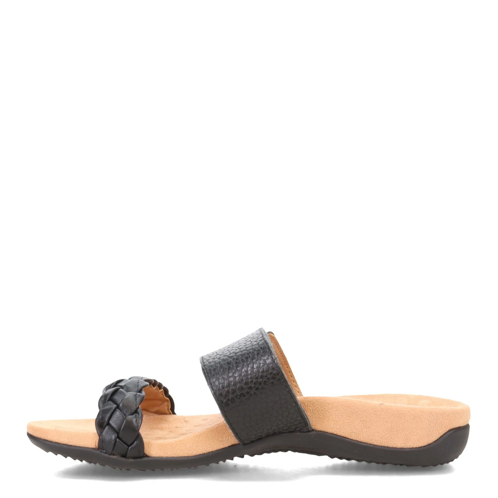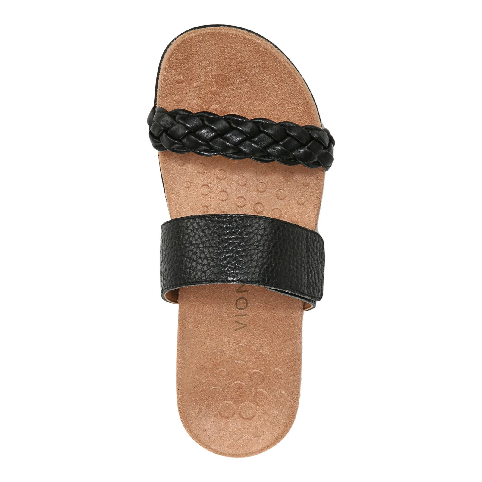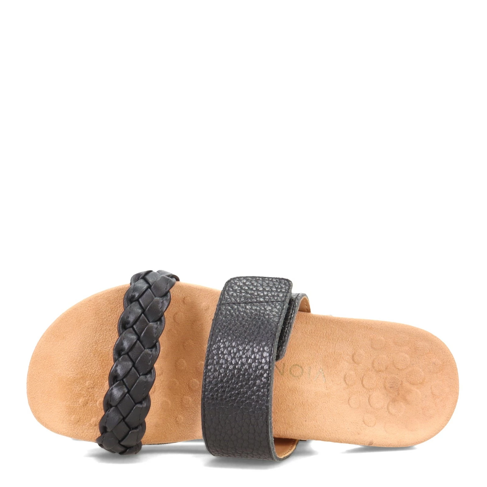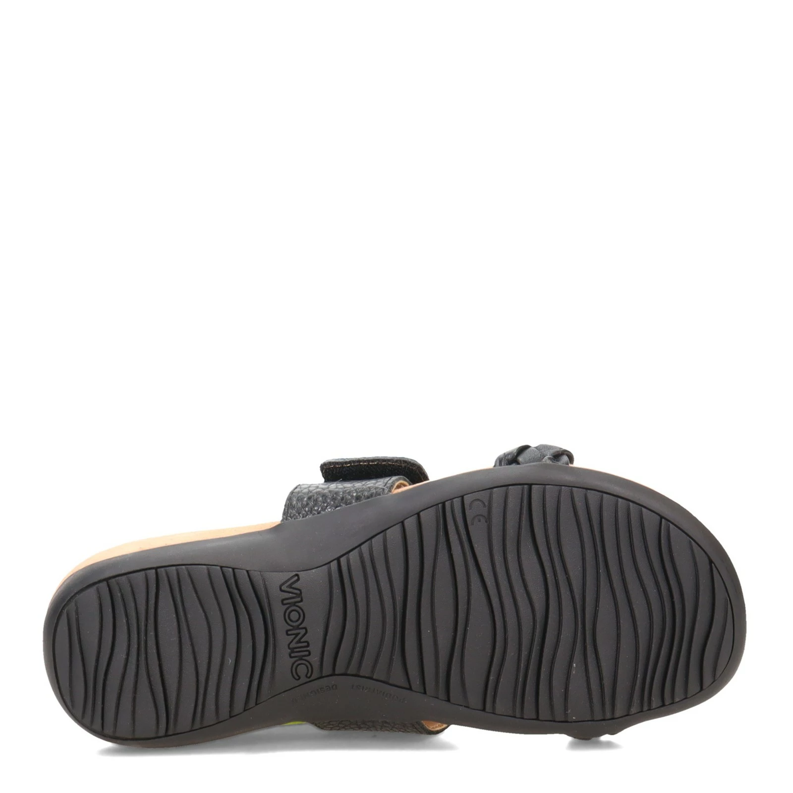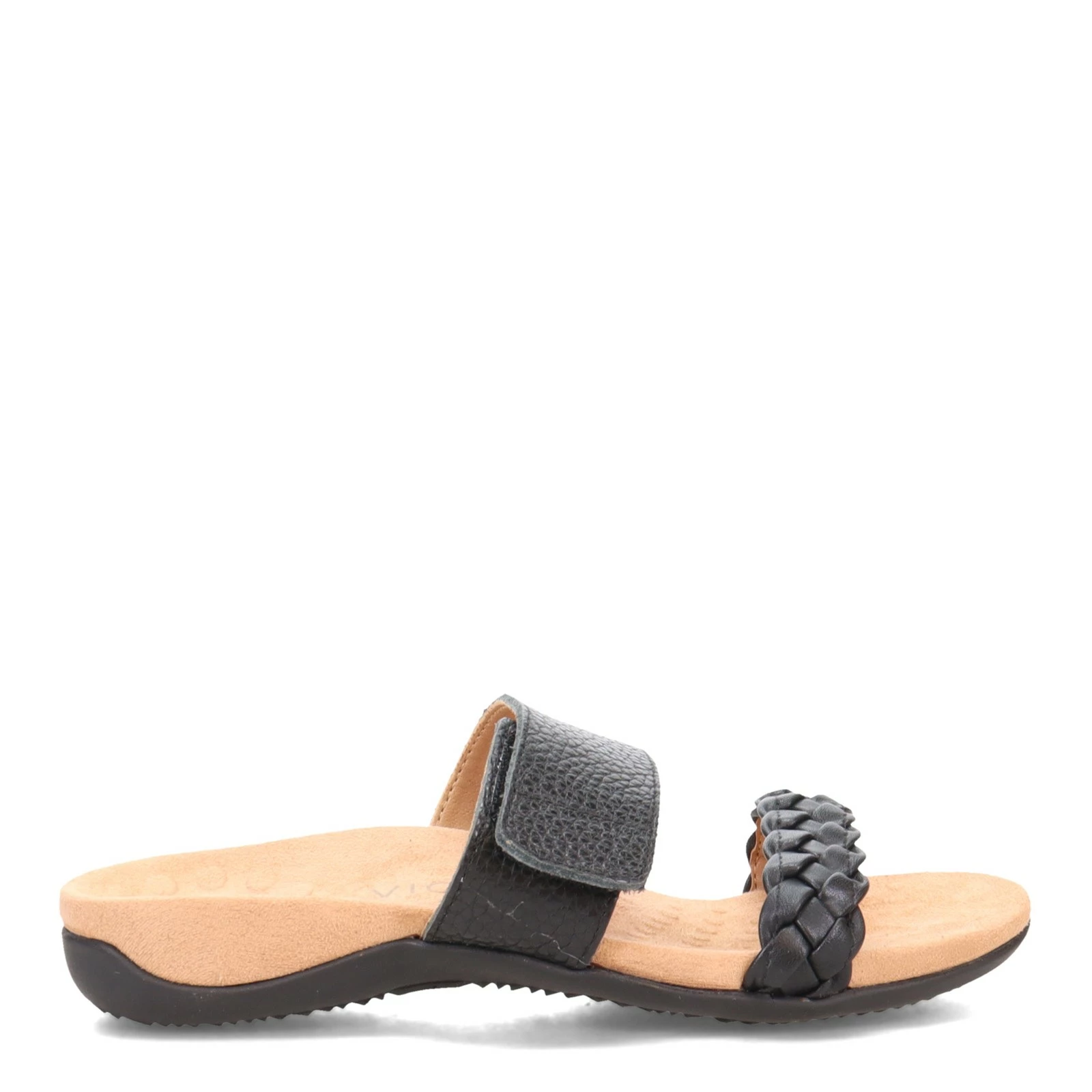 Women’s Vionic, Jeanne Sandal. Step out in style with this chic slide from Vionic. The woven leather front band and adjustable wide band provide a foot flattering look, while the microfiber-covered orthotic footbed ensures optimum comfort and support.